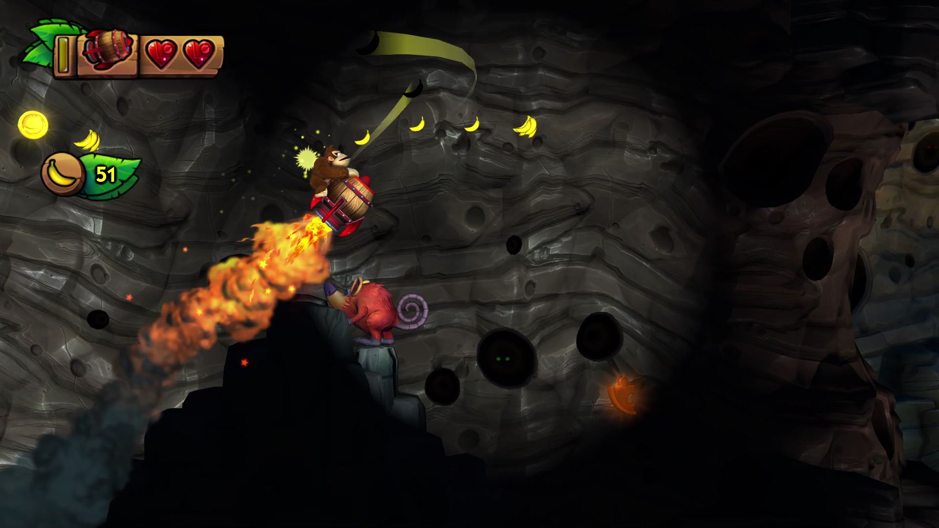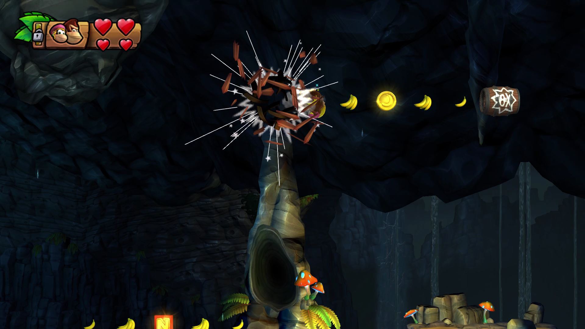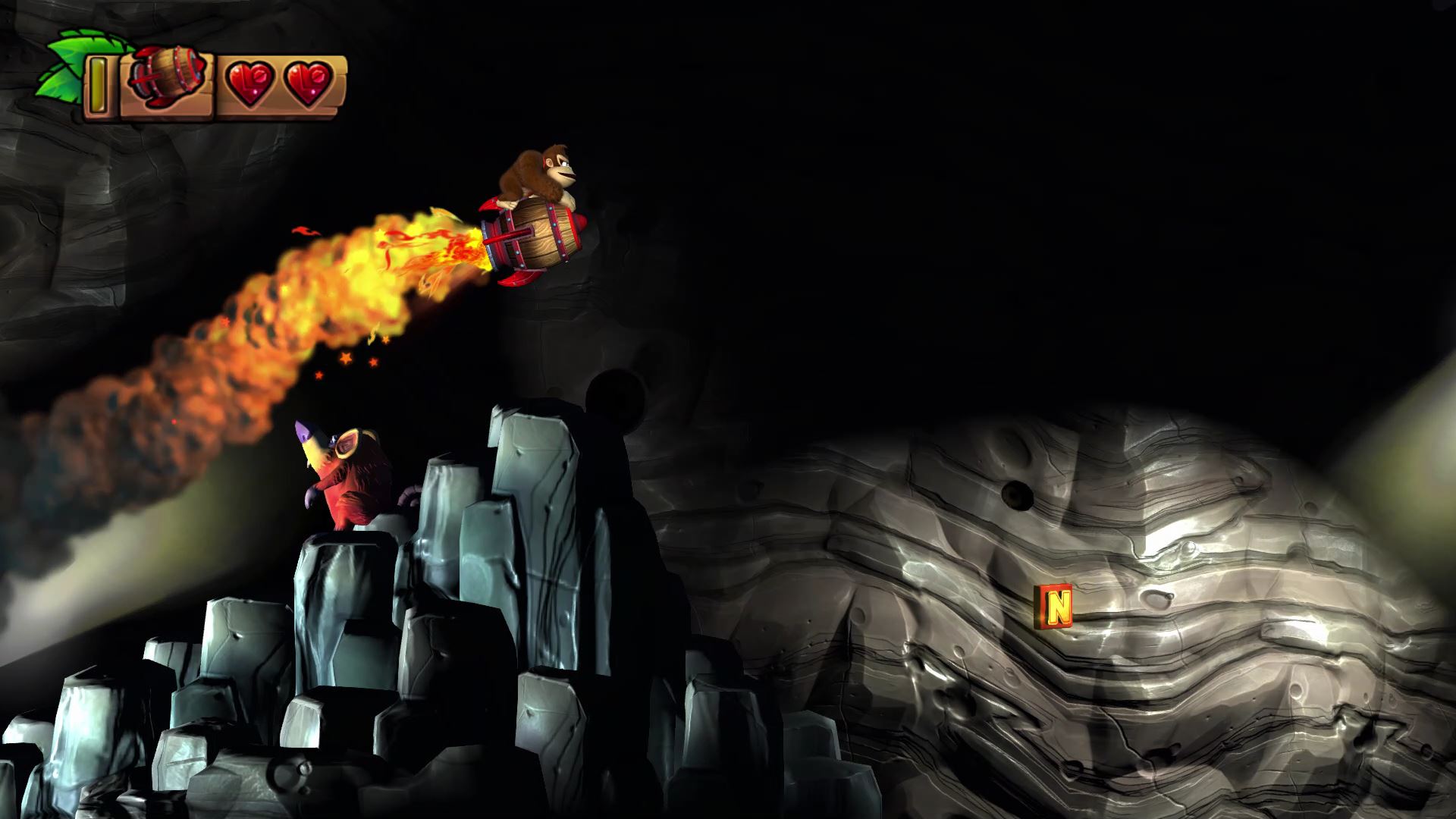 - N Letter: During the crumbling cavern escape, launch your cannon at the banana line.