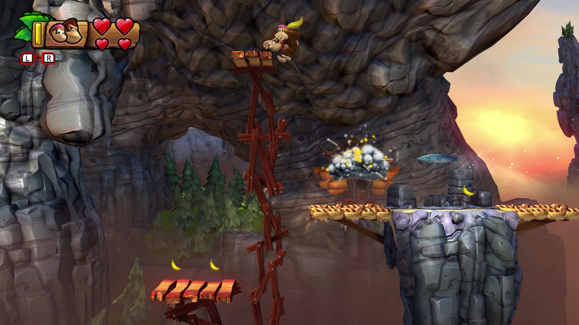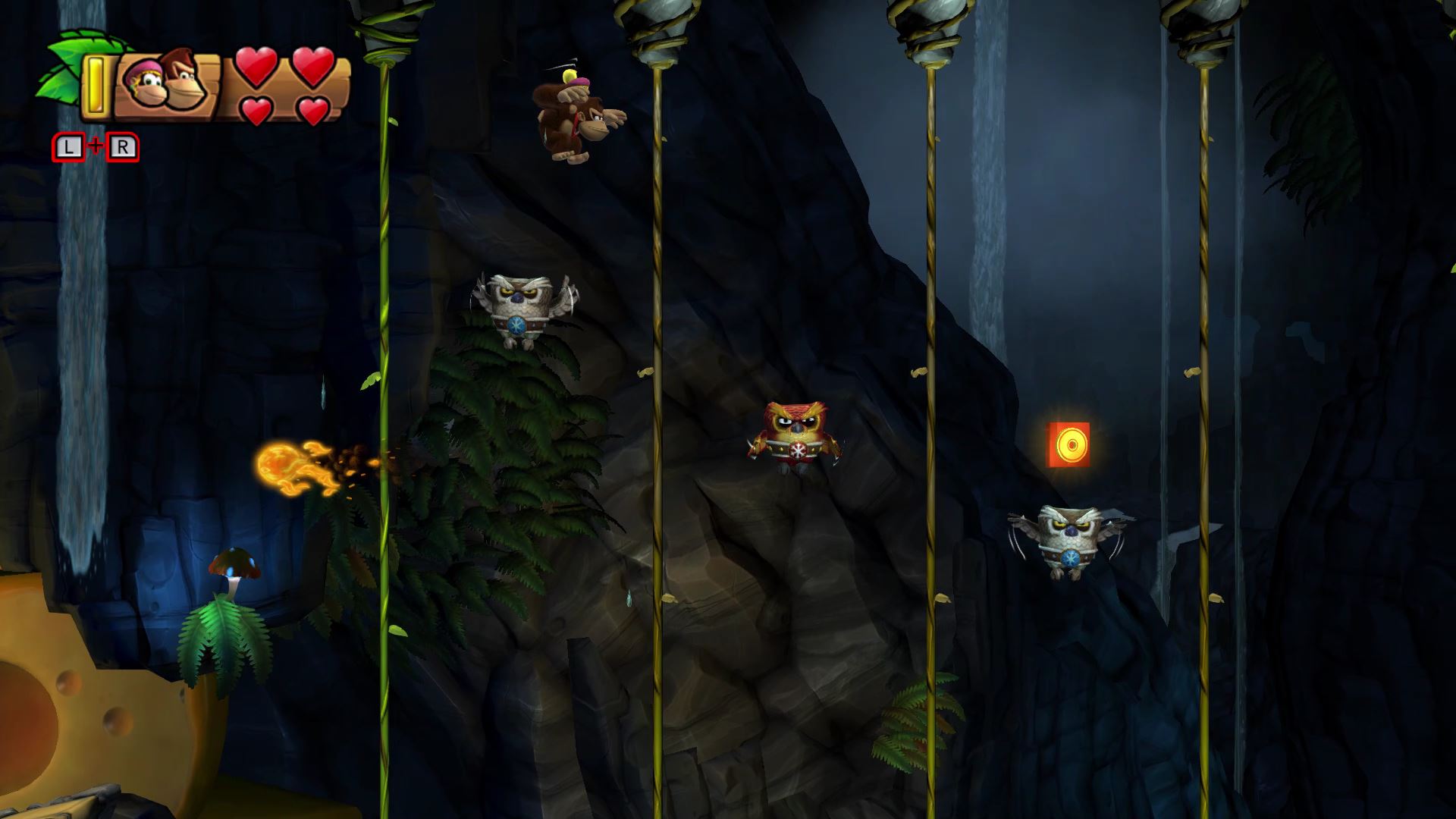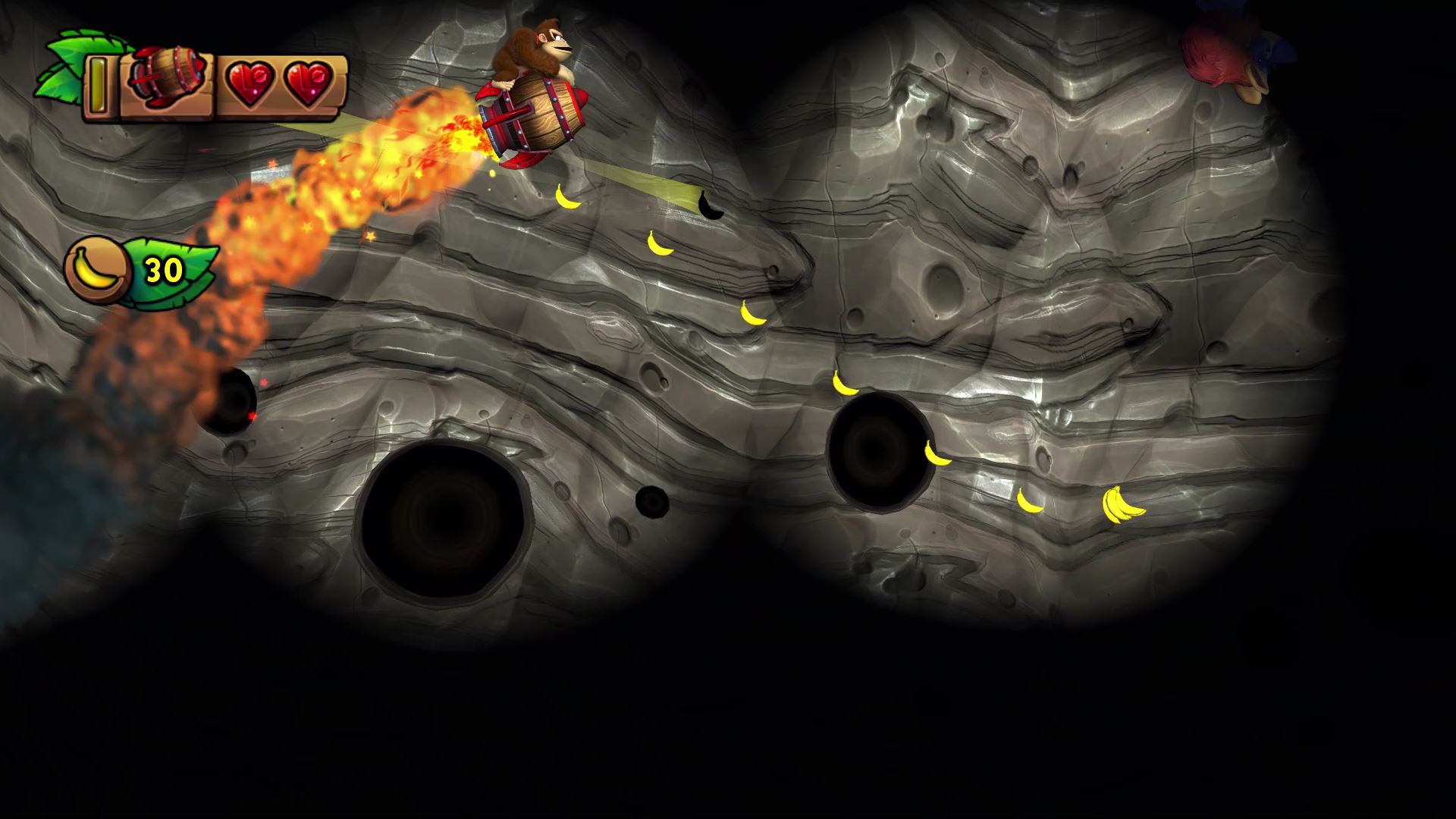 - N Letter: During the crumbling cavern escape, launch your cannon at the banana line.
