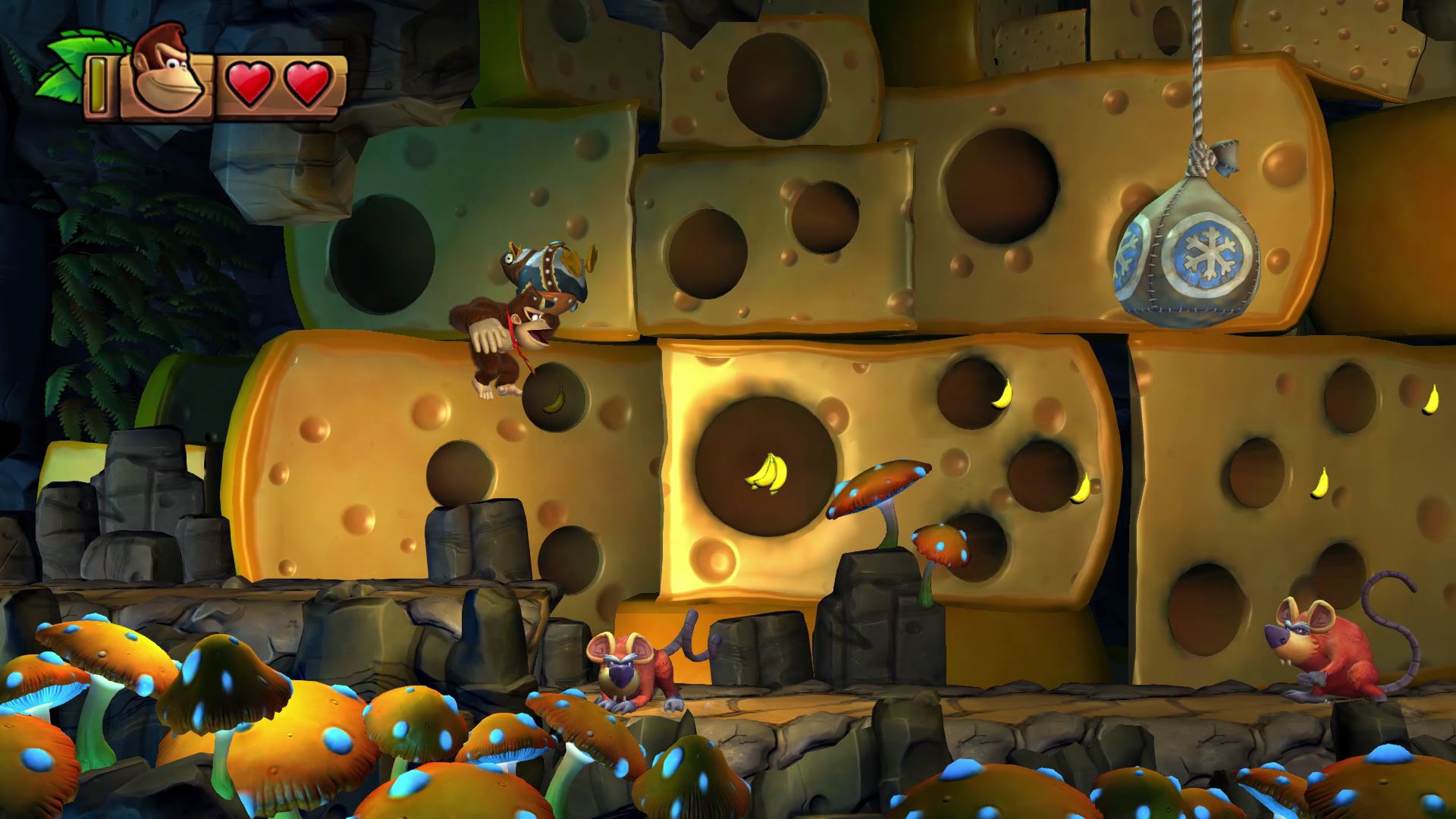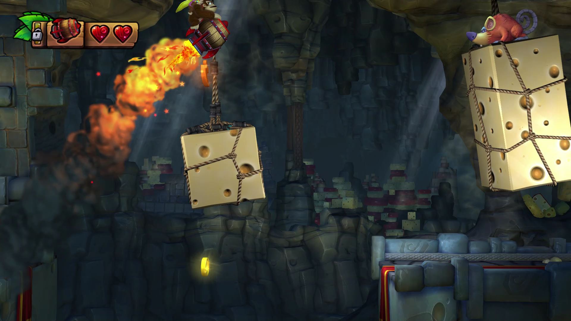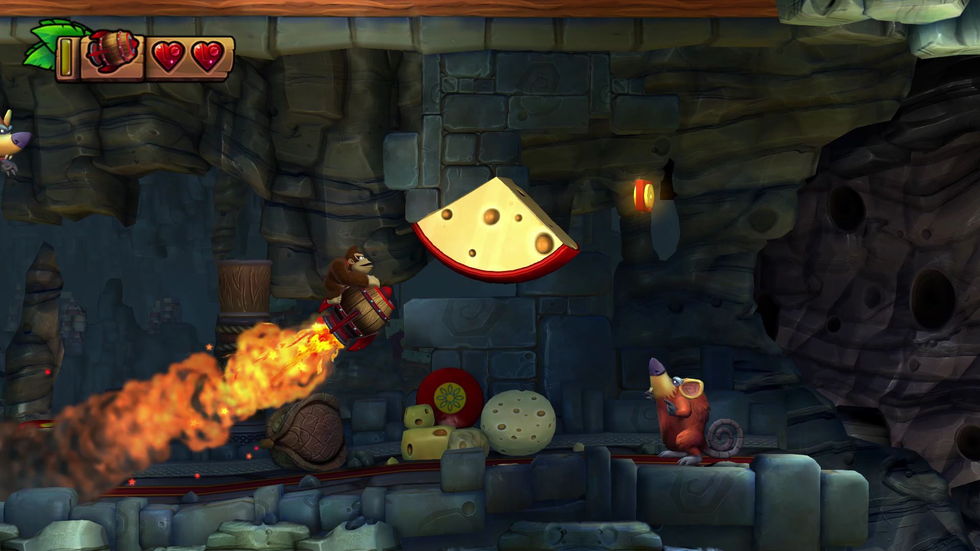 - Puzzle Piece #3: Back before you actually enter the cheese cave, drop into the hole between the floor and the tilting rock. There’s a hidden cannon that will launch DK into a mini-game.