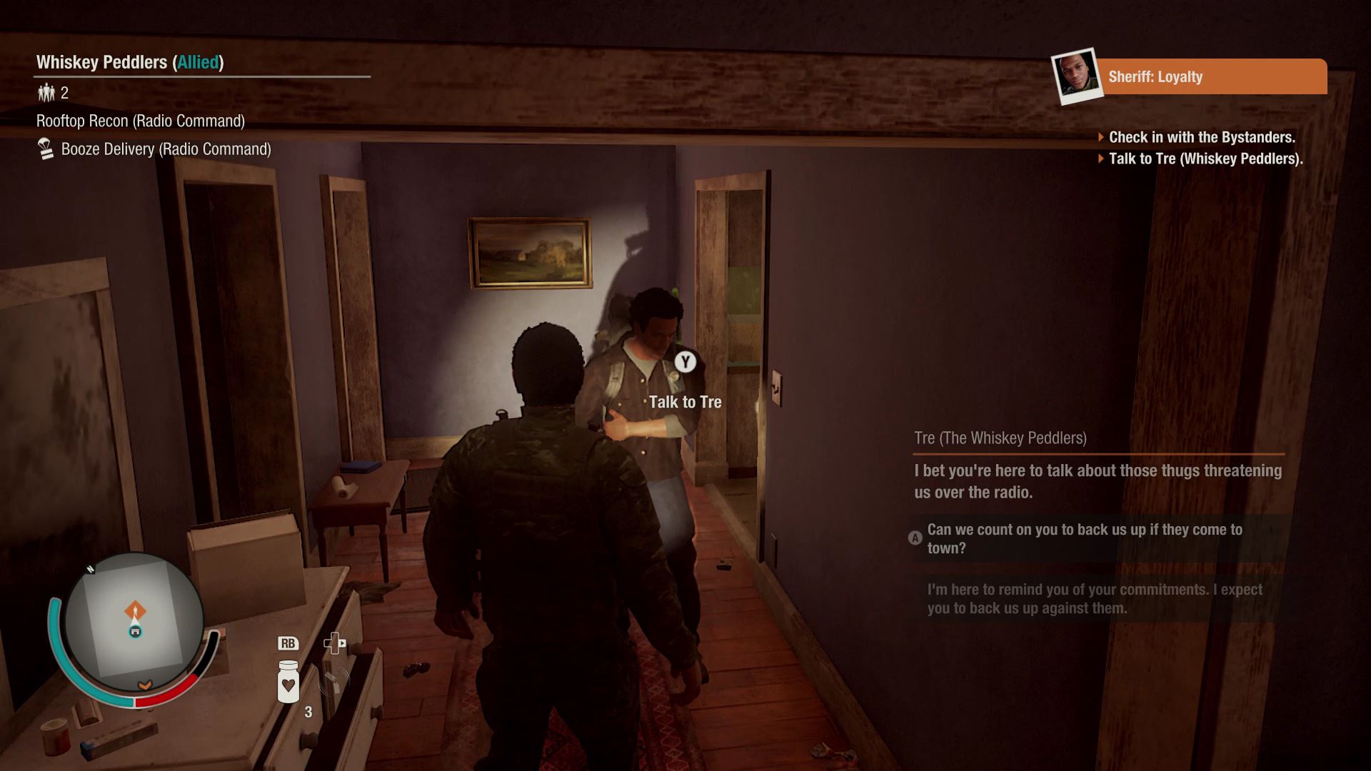 Return to your community and you’ll begin the ‘Sheriff: Loyalty‘ quest. You’ll need to travel to two friendly enclaves (if they’re allies, things will go smoothly) and talk to them. If you’ve been keeping up with your enclaves and helping everyone, there shouldn’t be any problems.