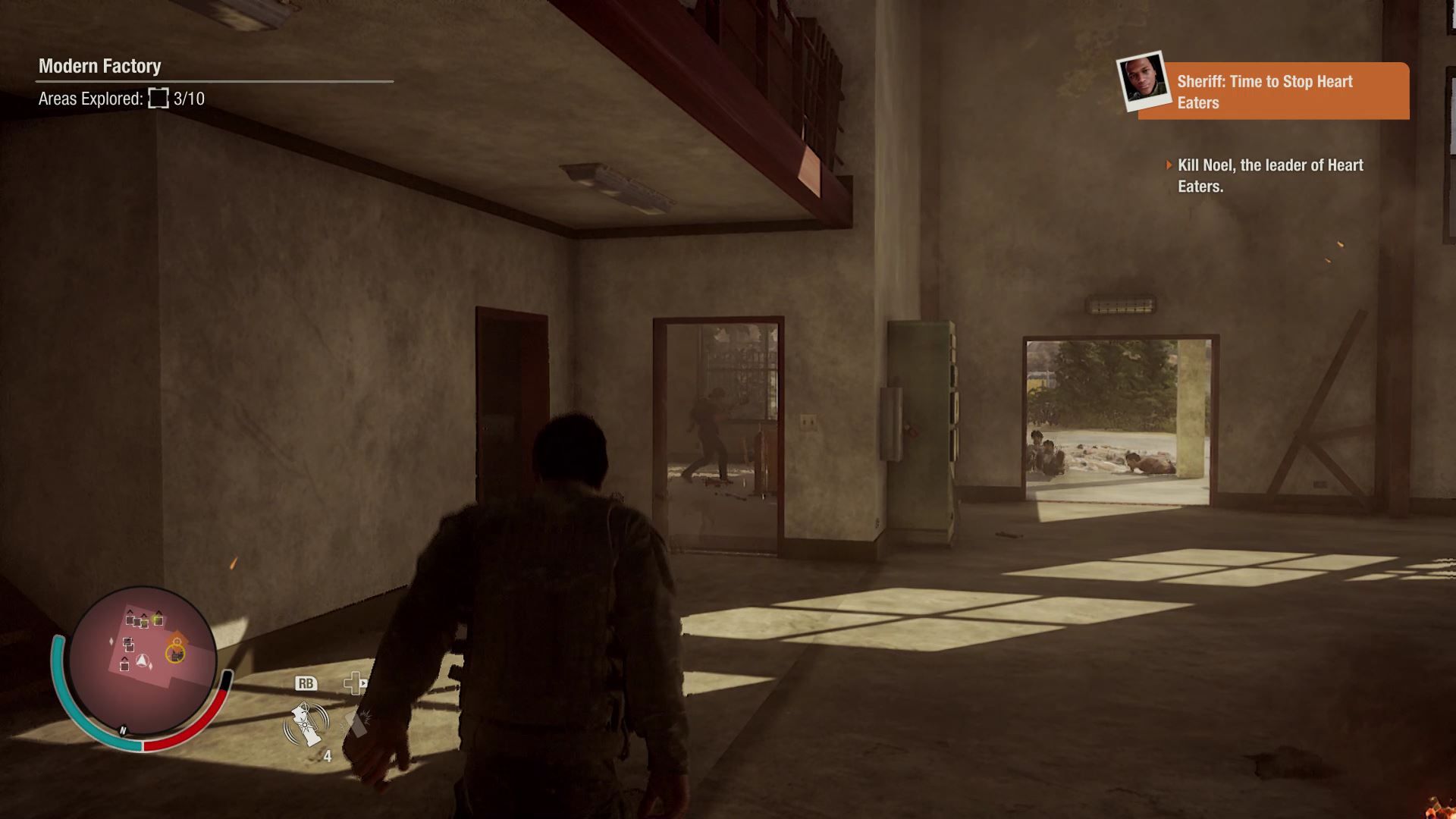 For the last step, you’ll hunt the leader of the invaders. He’s holed up with a large group of bandits in a random location — usually a large building like a modern factory. No matter what, he’s always hiding at the top of the building with at least two bandits. The bandits are well-armed, and you’ll find 6+ of them, spread out throughout the facility.