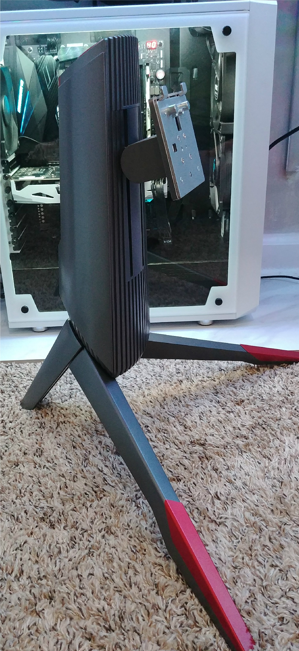 On the back of the display are some rigid sharp line-esque designs along with the led lighting. This is not the first time we’ve seen manufacturers use lighting accents and in the monitor menus settings, you can change the intensity and effects. However, much like other monitors with this led trend, the lighting is not bright enough to showcase a hue onto a wall. Instead, this would be aimed for more of a showpiece at perhaps a LAN party.