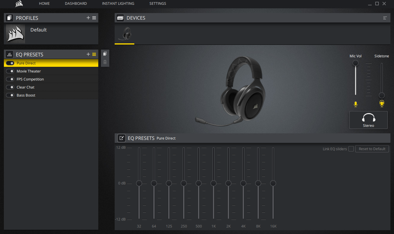 Speaking of audio quality, PC gamers will be able to make use of the Corsair Utility Engine or otherwise known as CUE. This is Corsair’s software to tweak and create profiles for their line of products. It’s within this software that gamers can tweak various EQ aspects to the headset audio along with the microphone volume. However, if you’re unfamiliar with the EQ ranges then there are a few presets to choose from along with switches to boost the bass or offer more filters for the standard FPS title.