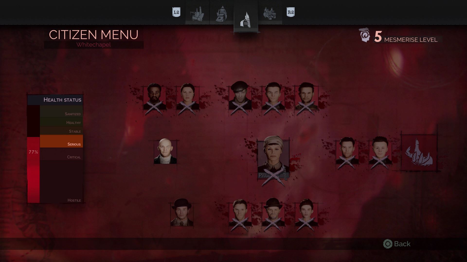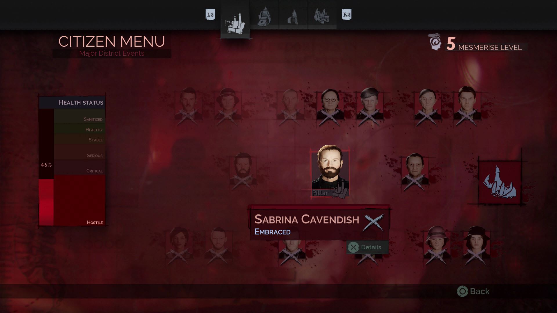 - Return to a bed and sleep. Sickness will spread, but sickness alone won’t cause a district to become hostile. Continue to sleep, over and over, until the stability meter stops. When it stops going down, hunt more people, then sleep again.