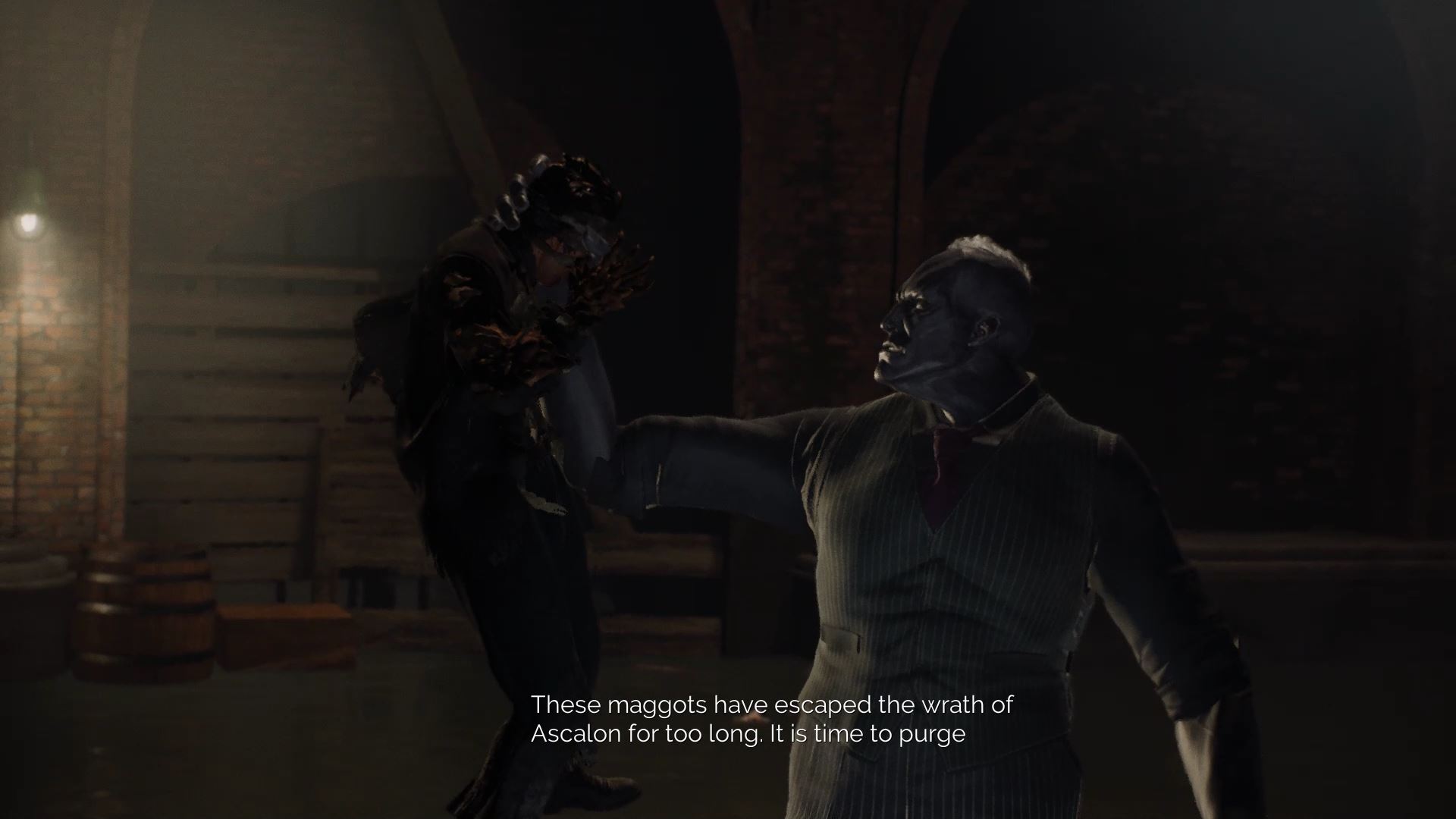 The first boss is a giant Volkud Vampire you encounter while searching the underground sewer network for evidence that Sean Hampton is innocent. Fergal is a giant, powerful opponent that will periodically summon shadow forms of himself. Move carefully and keep a full stamina bar for quick escapes.