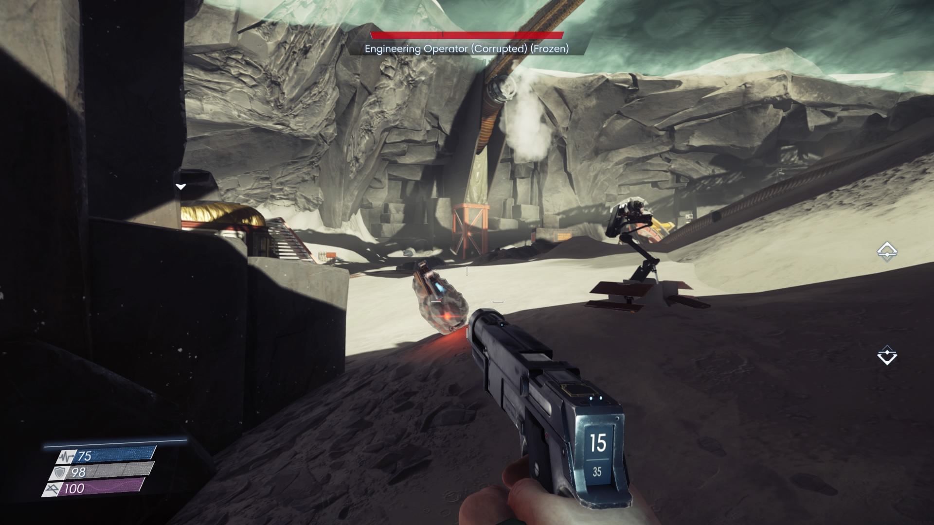 Objective: Access the Security Workstation – At the Crater, you need to access the Security Workstation in the central building. You’ll find Phantoms and Corrupted Engineers in this zone. You’ll need a weapon — don’t engage Operators unless you have to, the Phantoms can be destroyed with the pistol alone, you’ll need more to deal with the Operators and especially the Harvesters.