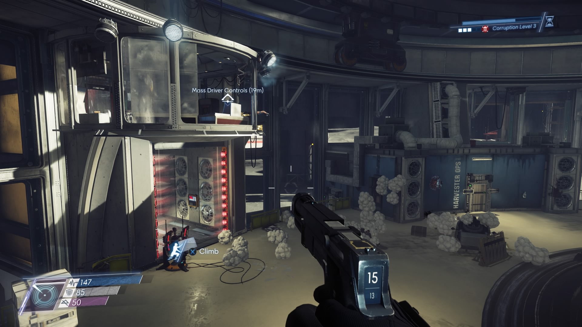 - Access the Moonworks area from the Tram Station, or through the Crater main entrance. You’ll need to find the cargo container loaded into the bottom of the Mass Driver shaft — from the Tram Station, go past the security office and to the lounge.