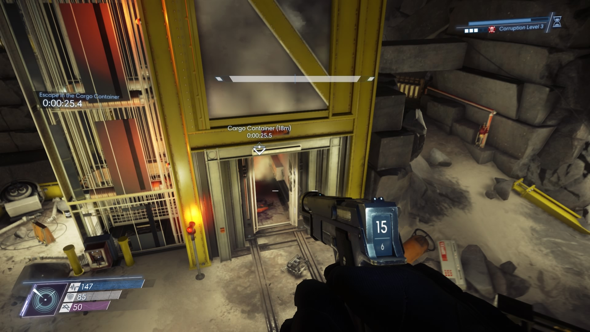 - Past the lounge, go down through the Systems area, and into the Central Mine. There’s a tall shaft in the center with a cargo container loaded inside — check it out, search the body, and listen to the recording to unlock this escape method.