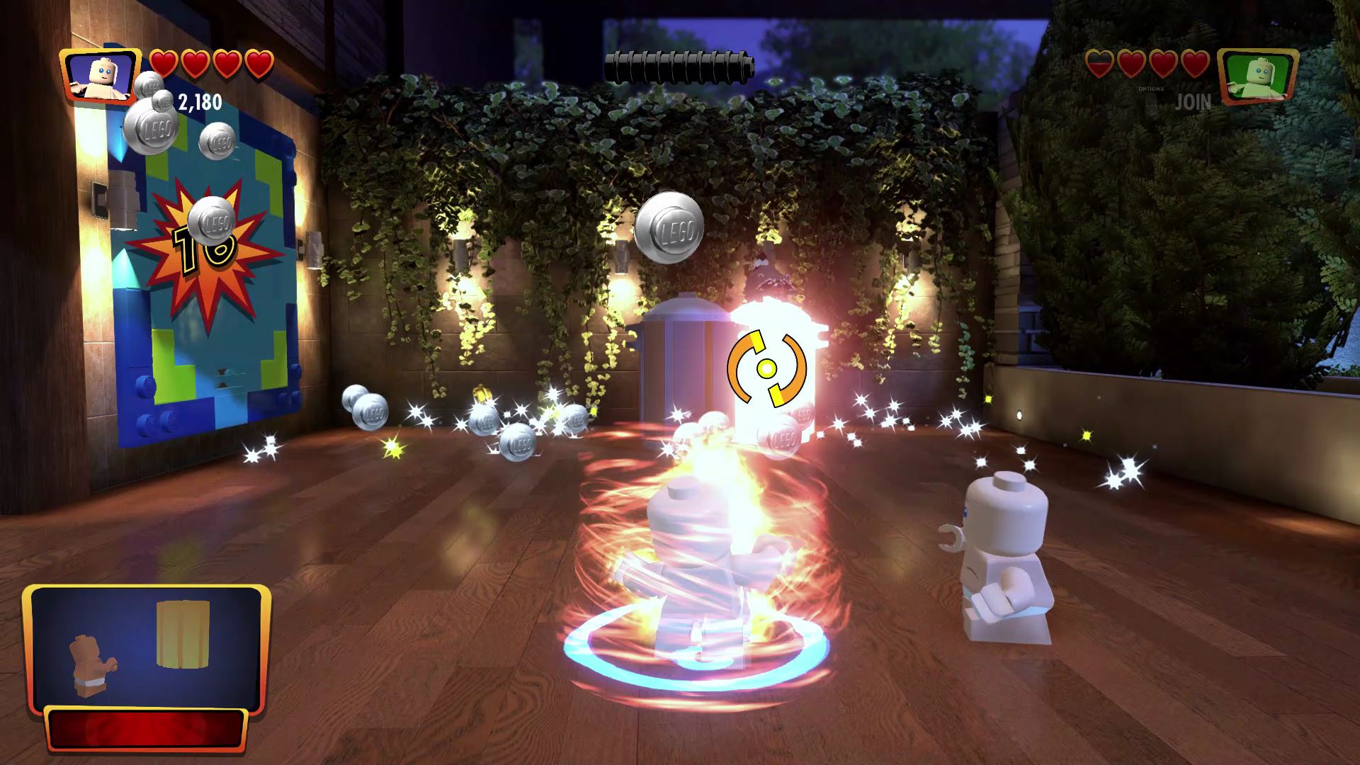 - Minikit #1: In the first section of the level, look on the left wall to find a Warp Wall. Use Jack-Jack (or Voyd) to create a portal to enter the Parr house. Smash the coffee table, then build and set the wood pile on fire.