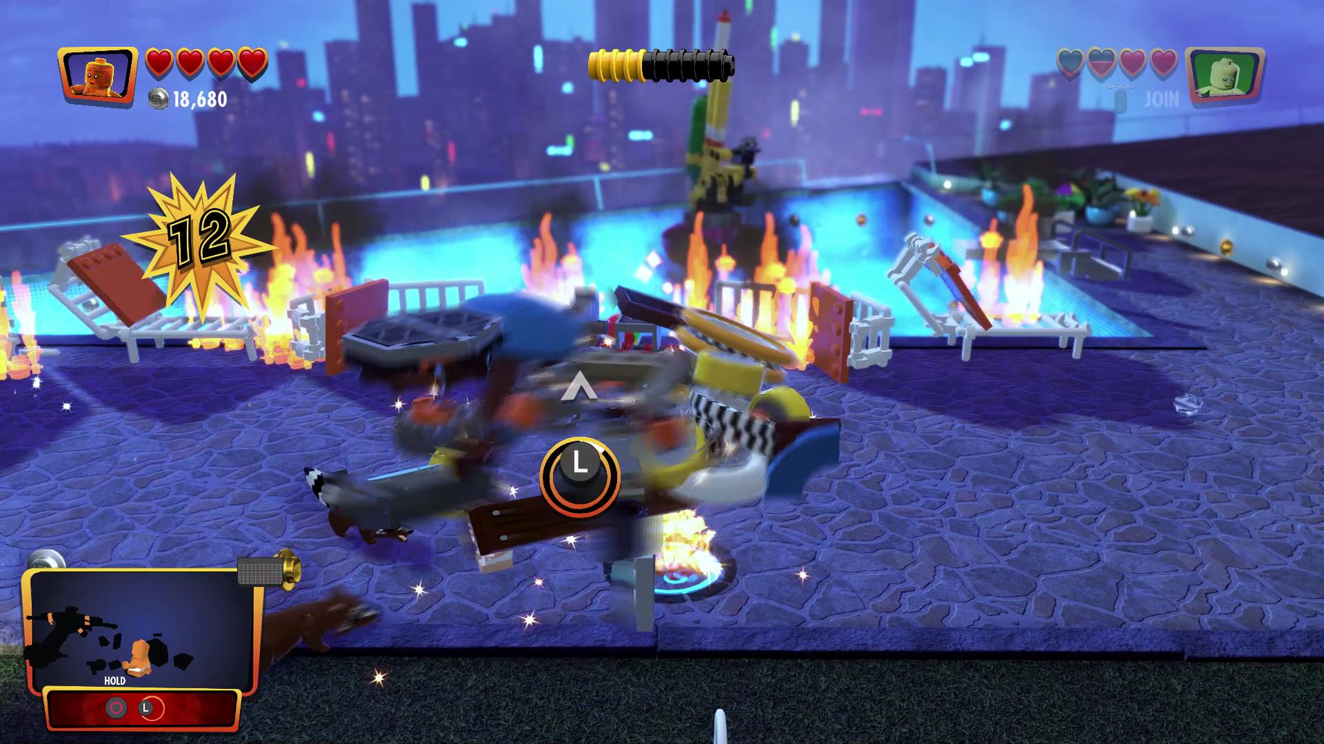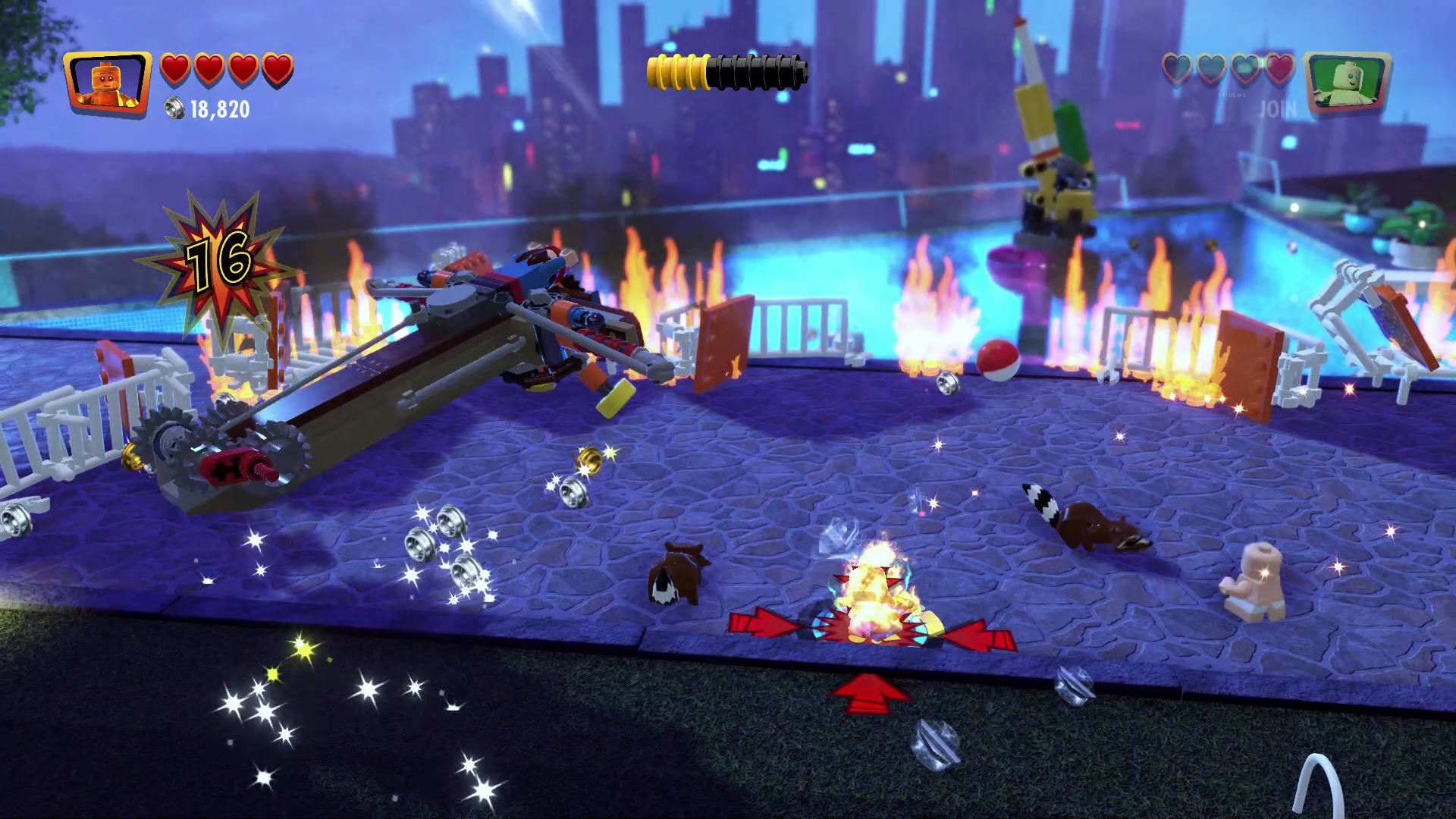 - Minikit #8: Next, reach the top of the second chopper and then find the burning wing at the background. Ice / water the LEGO fires to put them out and grab this minikit.