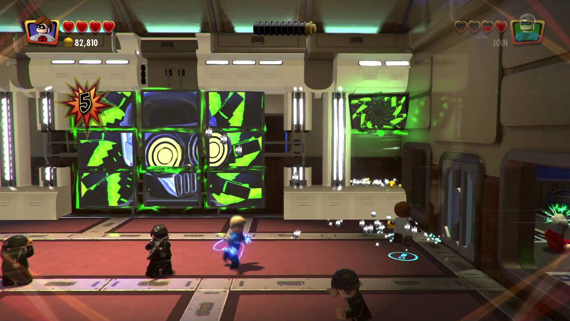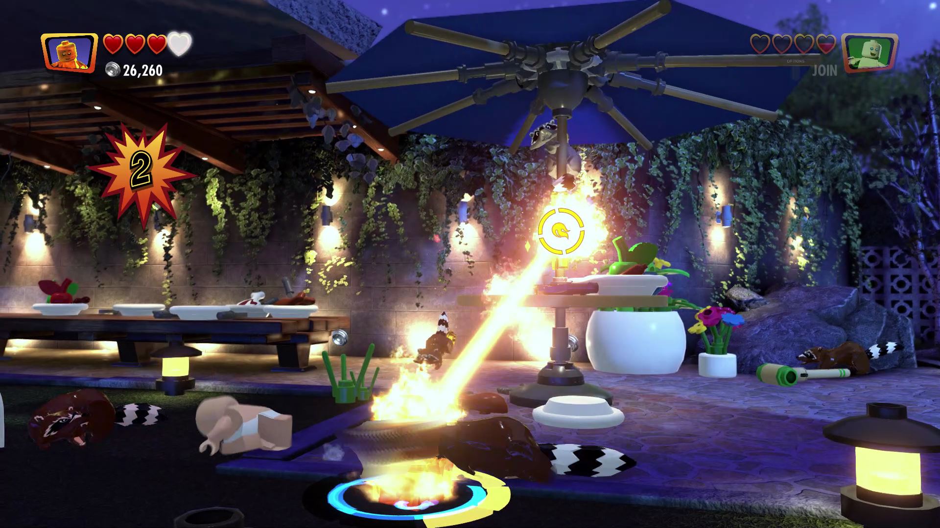 - Minikit #5: During the final part of the battle on the terrace, check the left side and repair the broken BBQ. After that, use psychic power (green) to move the food to the plates.