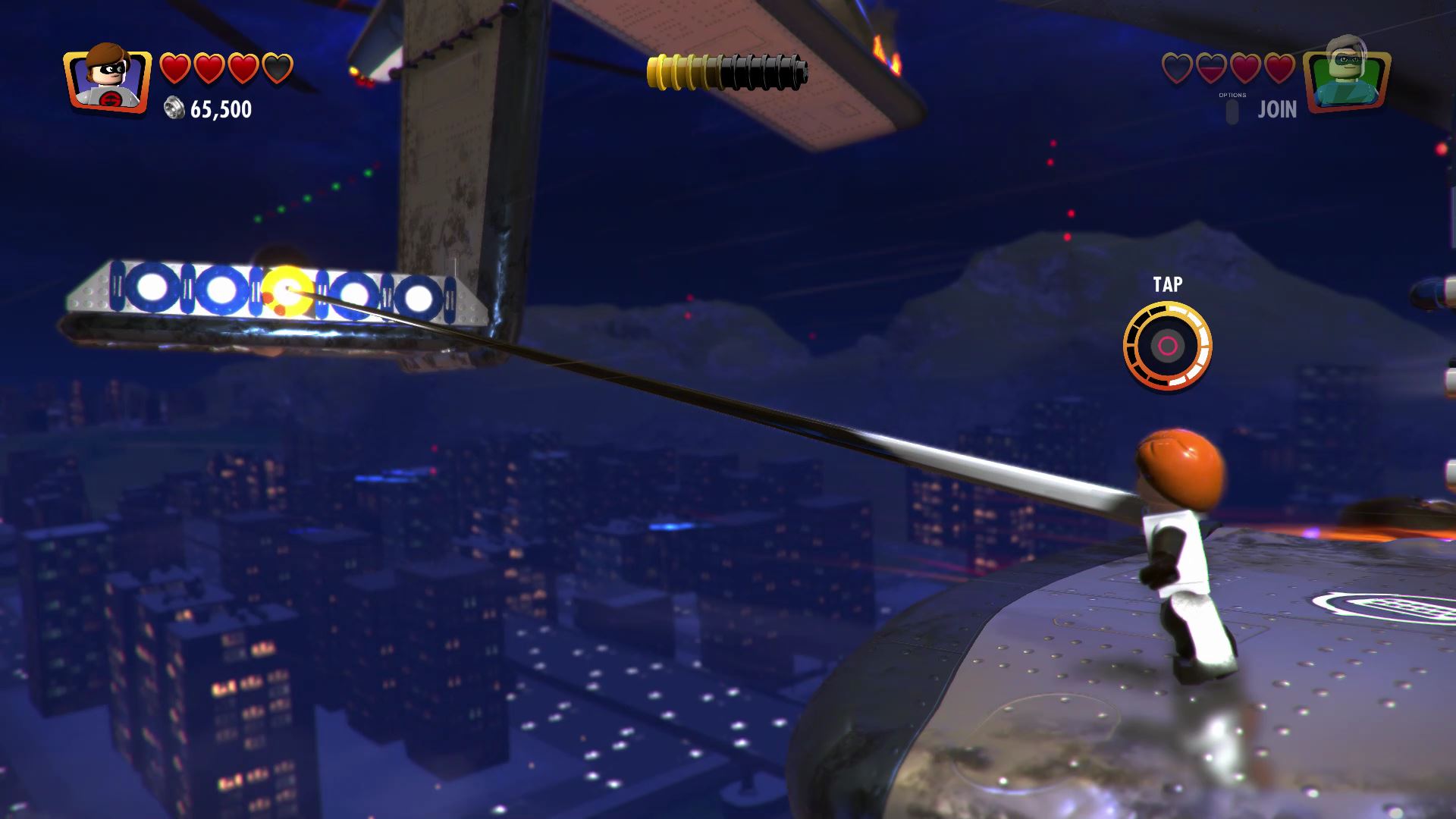 Same goes for Helen Parr’s piece of the story. When we swap to Elastigirl, she’s trying to save the Ambassador in an out-of-control helicopter aerocade. You’ll be able to reach previously unreachable corners of the chopper — the upper wings, the cargo area, and the opposite end of the second heli. Make sure to unlock plenty of characters before attempting this one on Free Play.