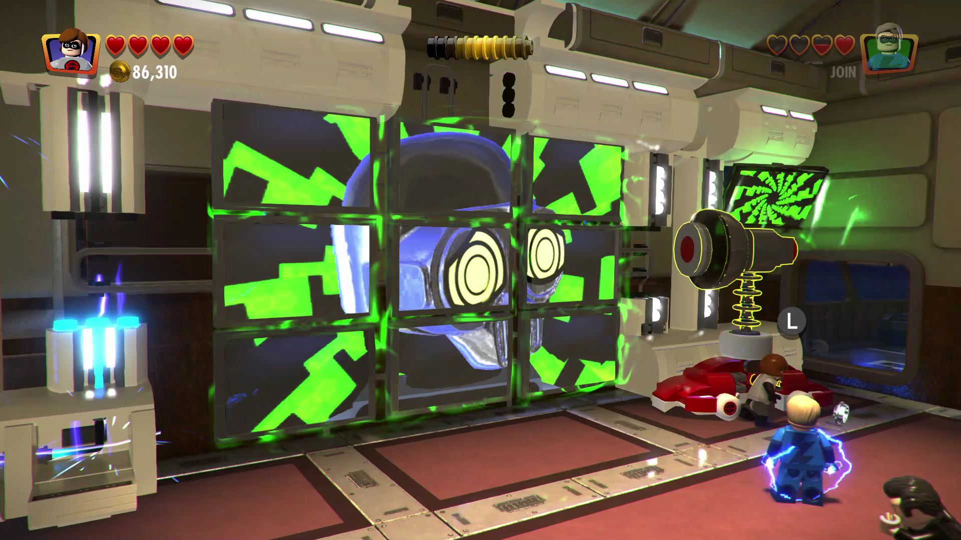 - Minikit #2: Use psychic power (green glow) on the shelf above a sleeping Bob Parr.