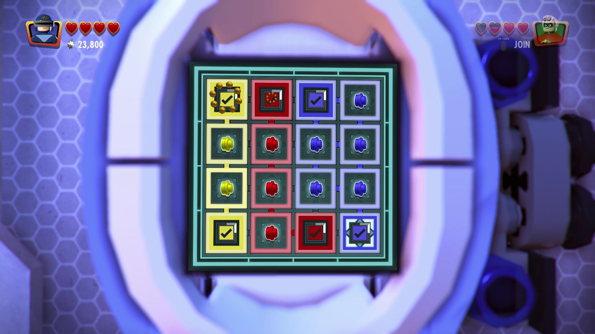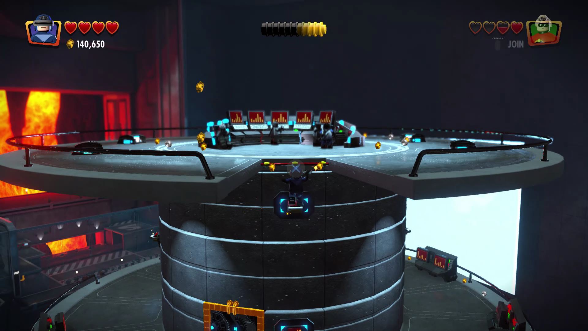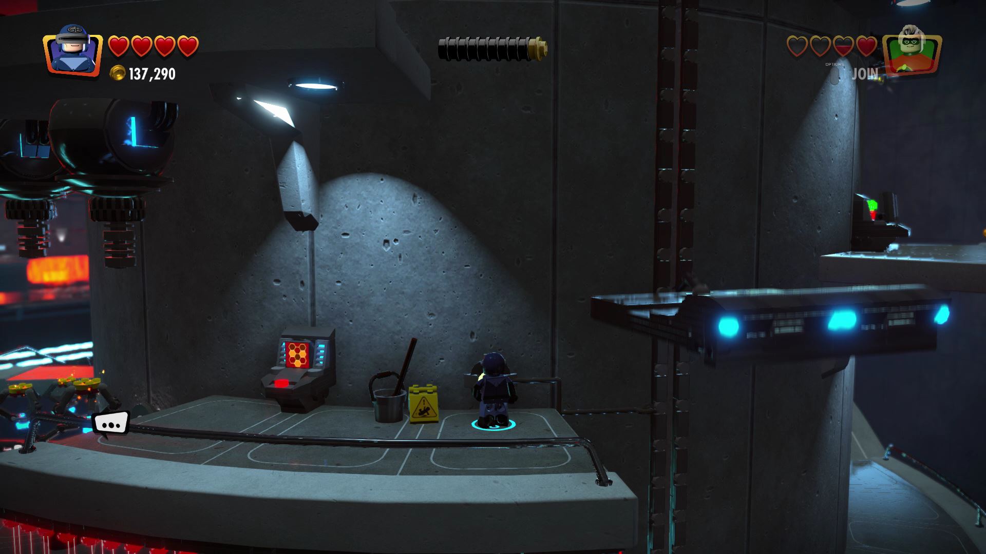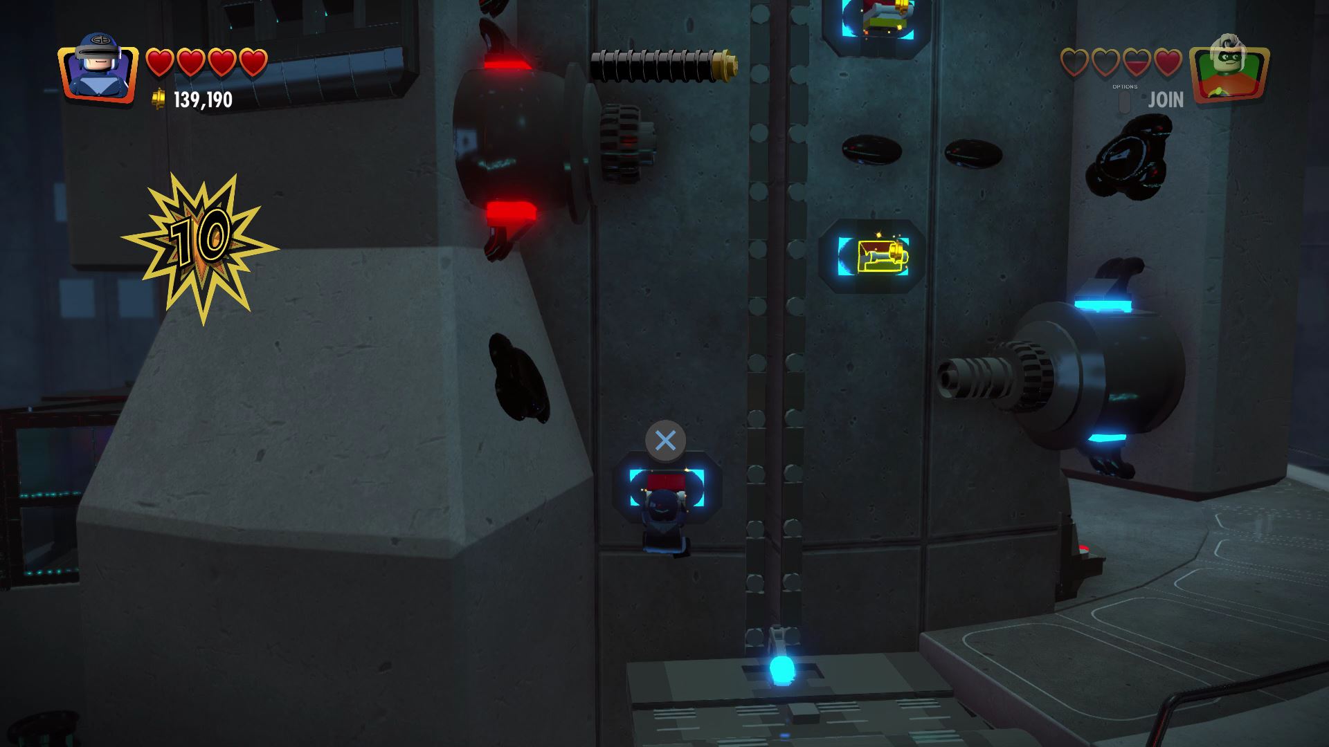 - Minikit #3: Fly up to the second floor balcony and use Mind Control to hit the switch behind the blue laser fence. Use Screen Slaver or any other mind-controlling character.