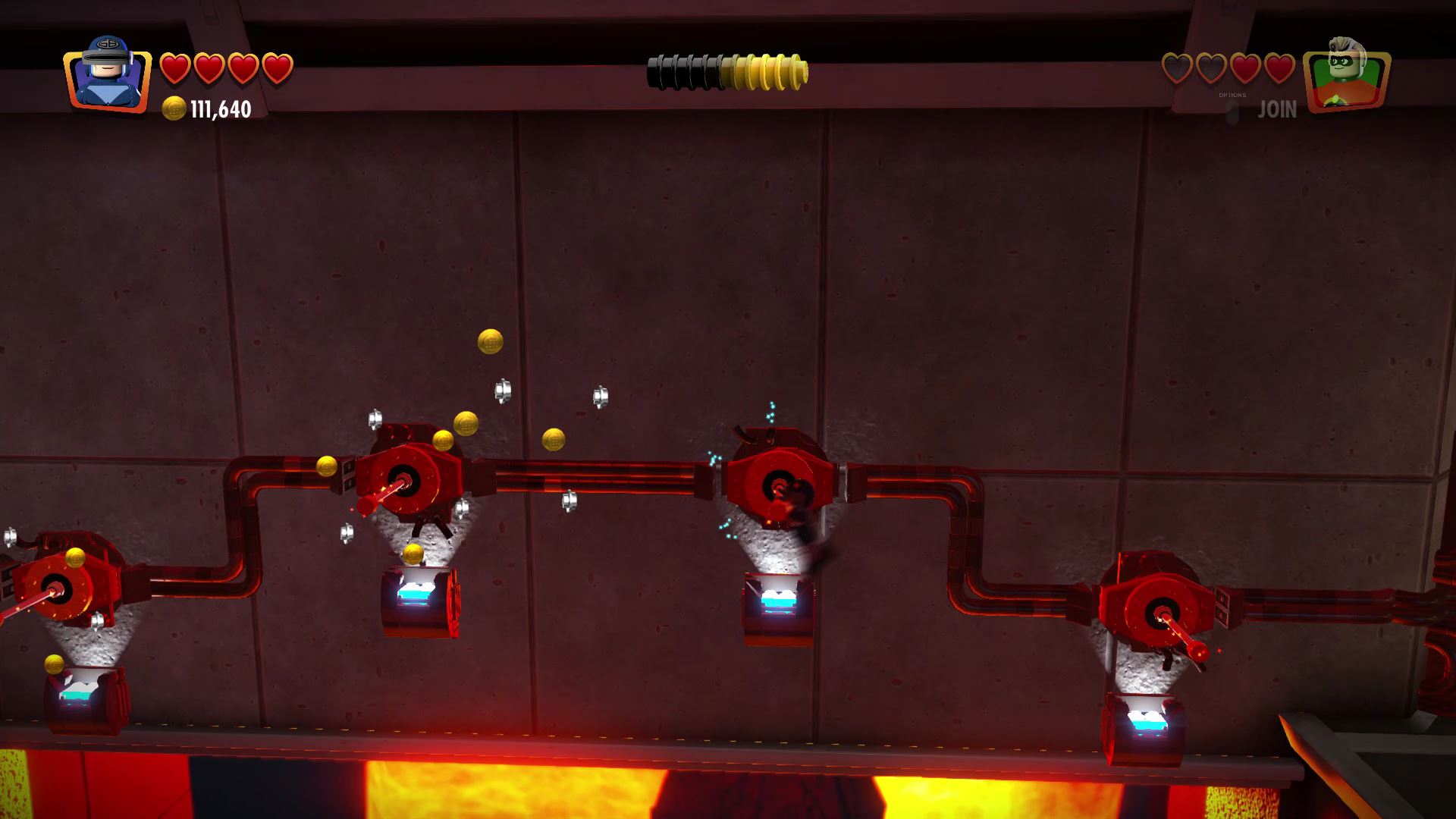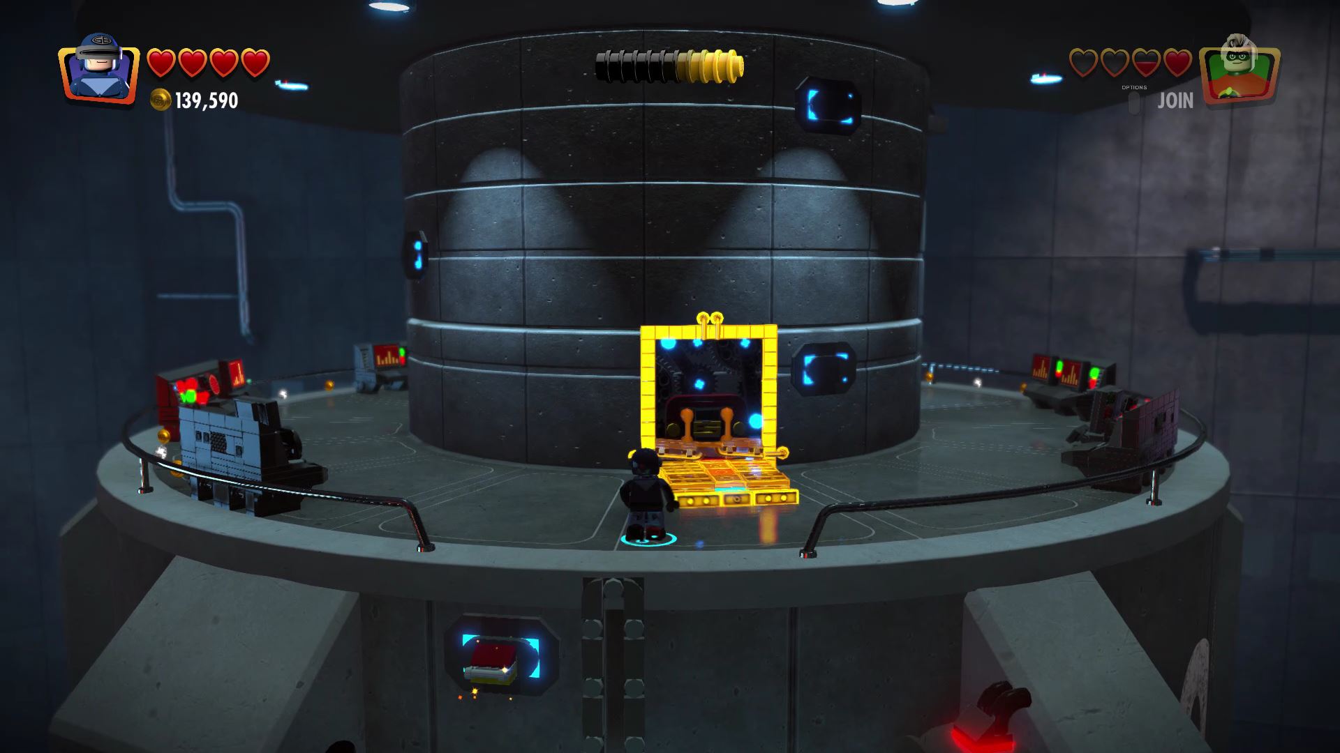 - Minikit #6: Inside the massive secret chamber, start by going left. In the room with the conveyor belt you need to sneak through, cut through the gold LEGO wall on the left with any laser character.