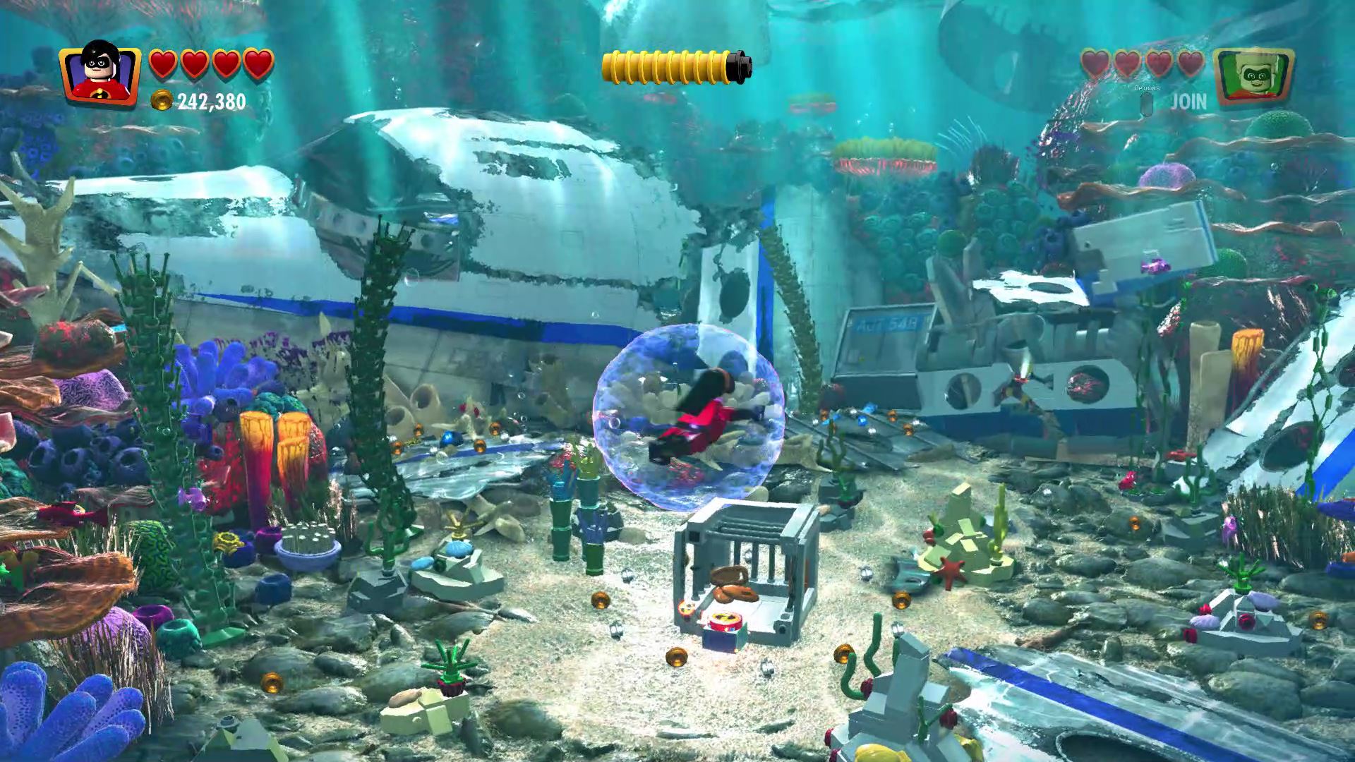 - Minikit #1: Dive into the water in the first section of the level and smash through the wreckage in the center-back section.