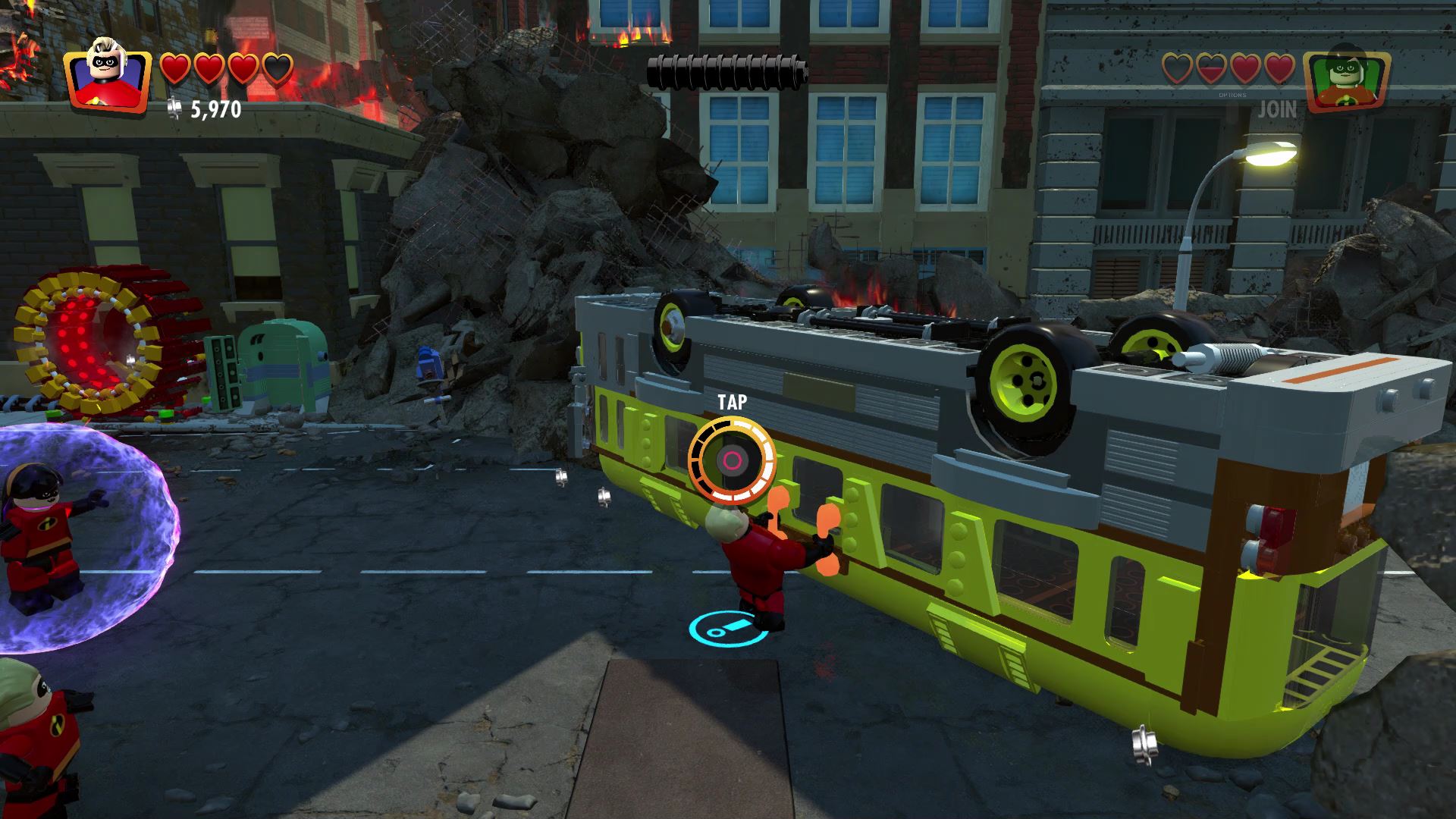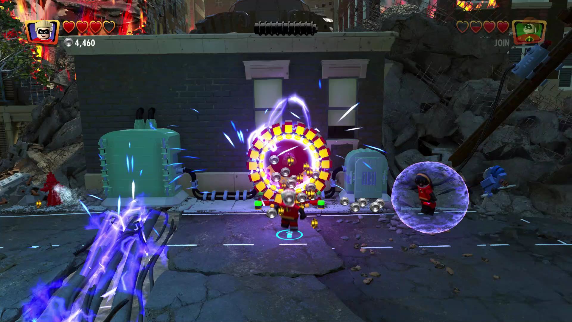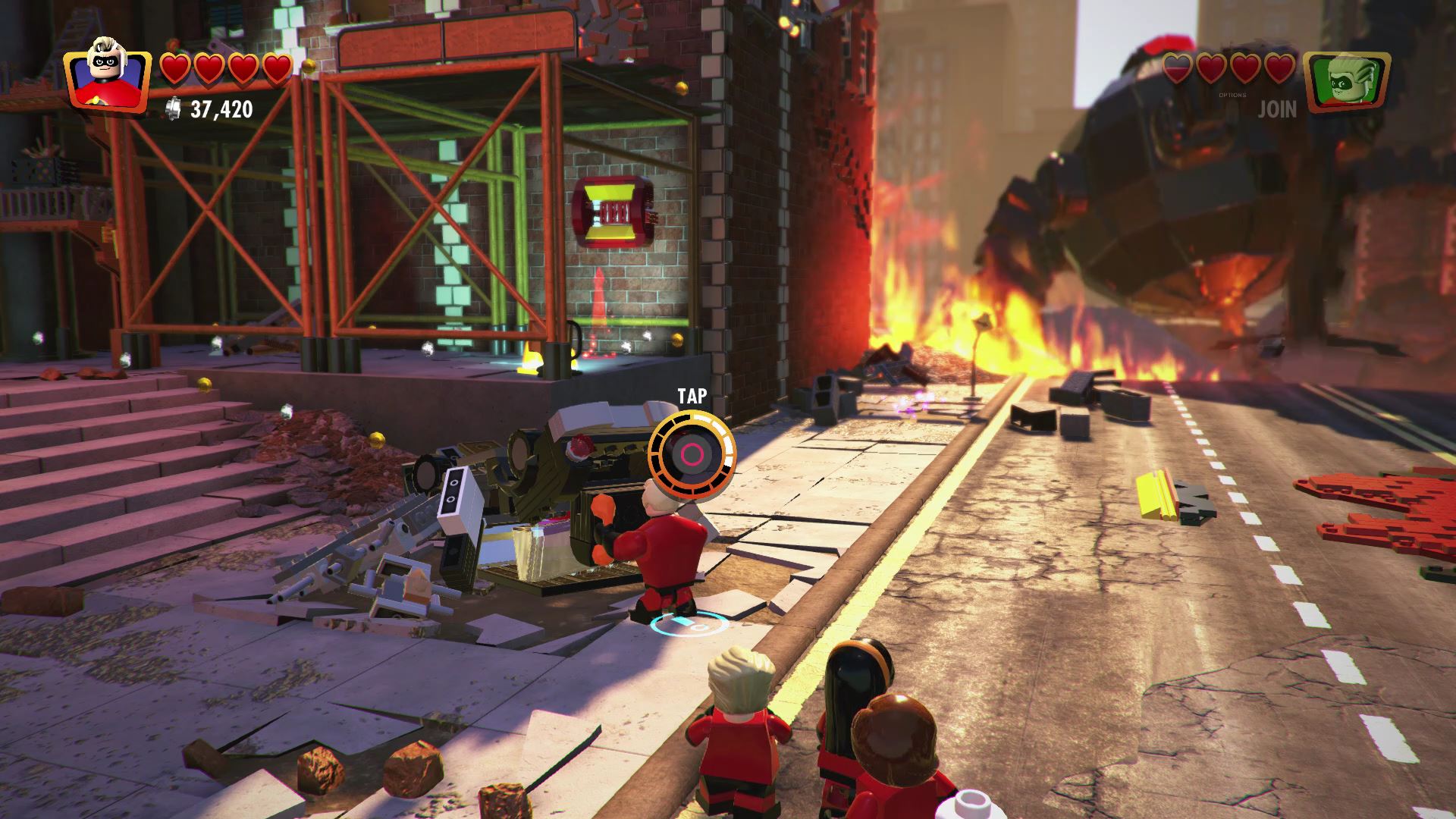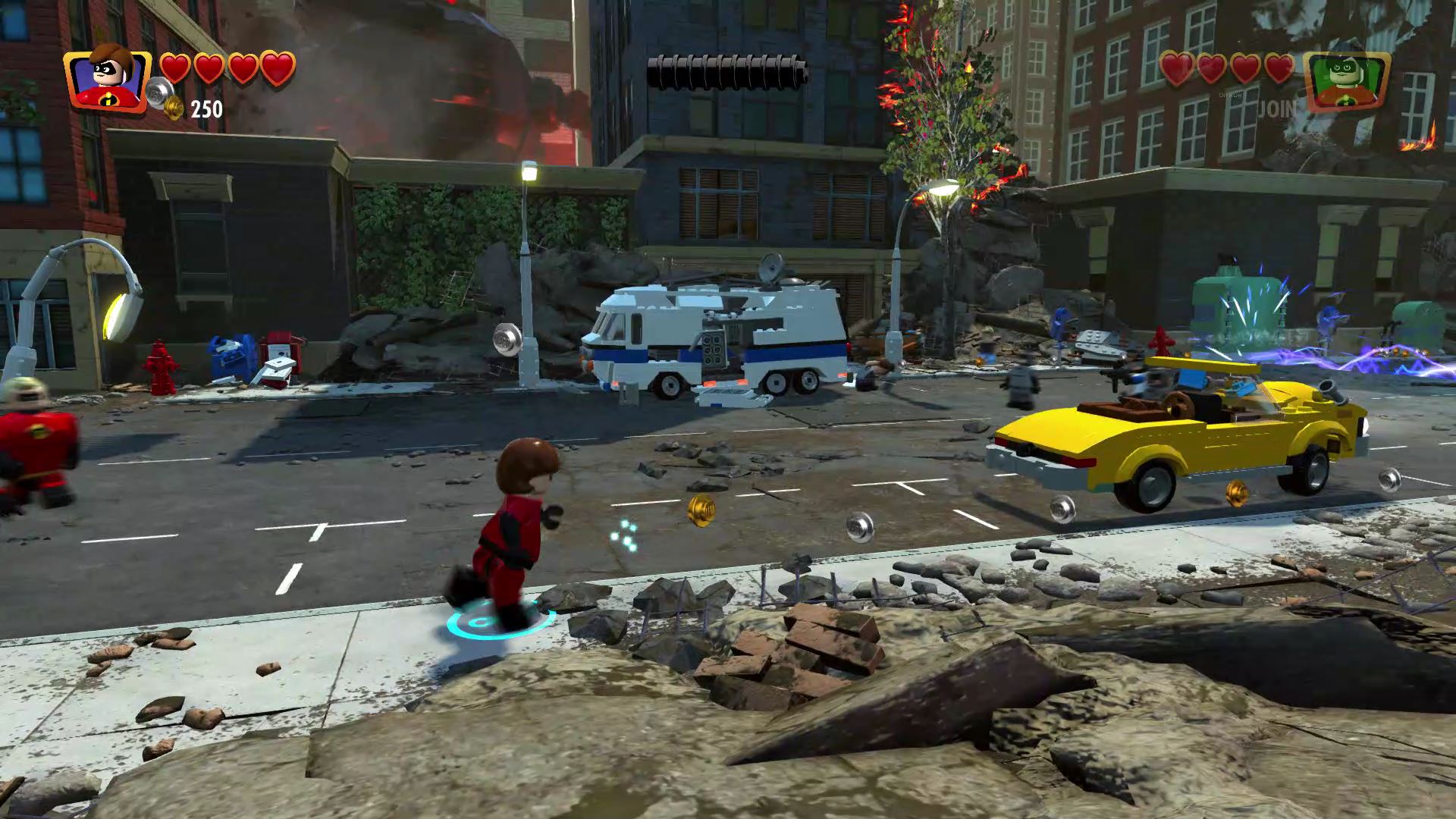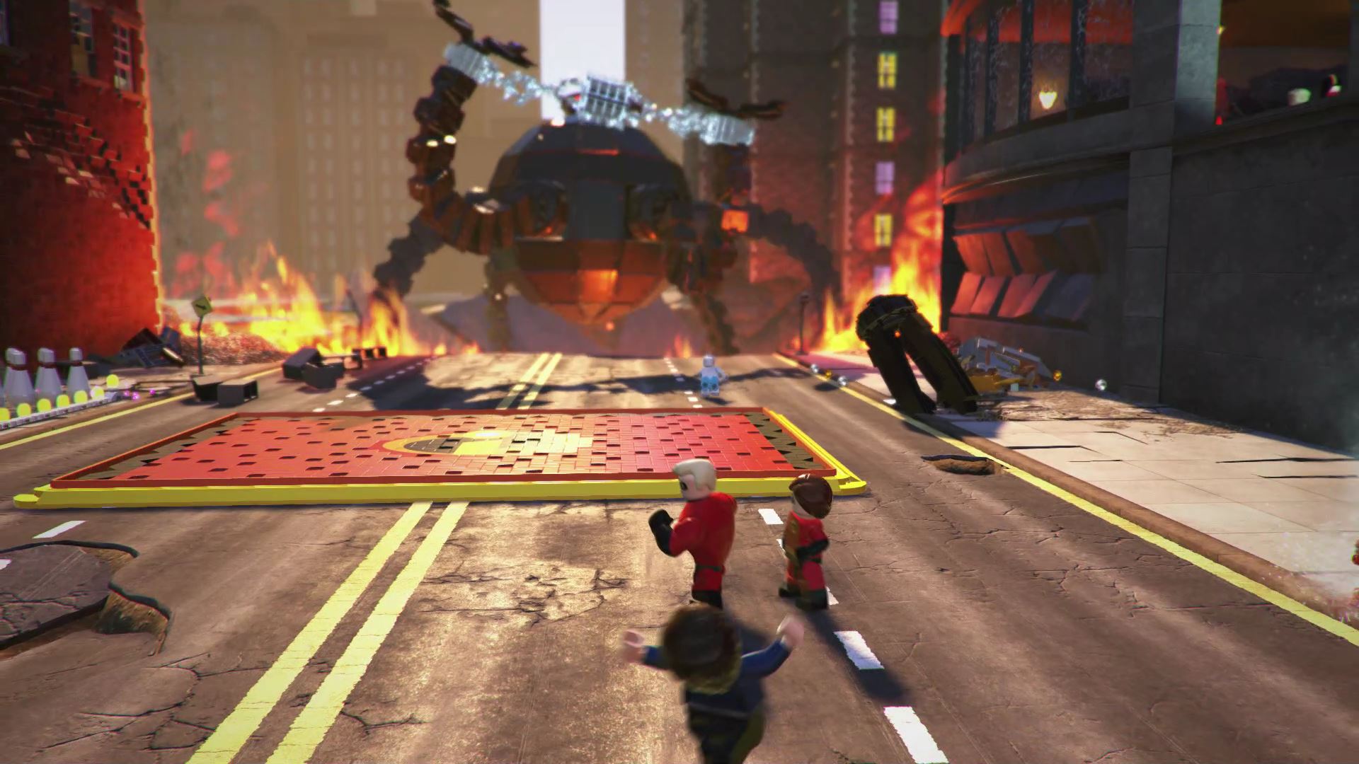 - Minikit #2: To the right of the start, use Frozone to put out the LEGO fire near the rubble.