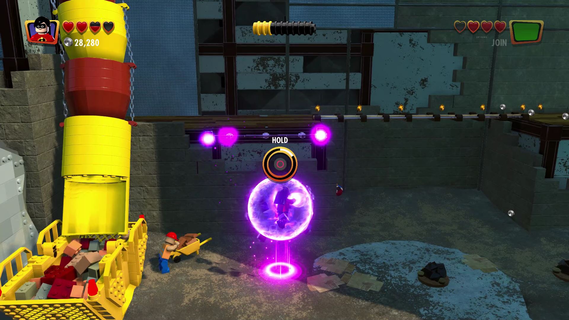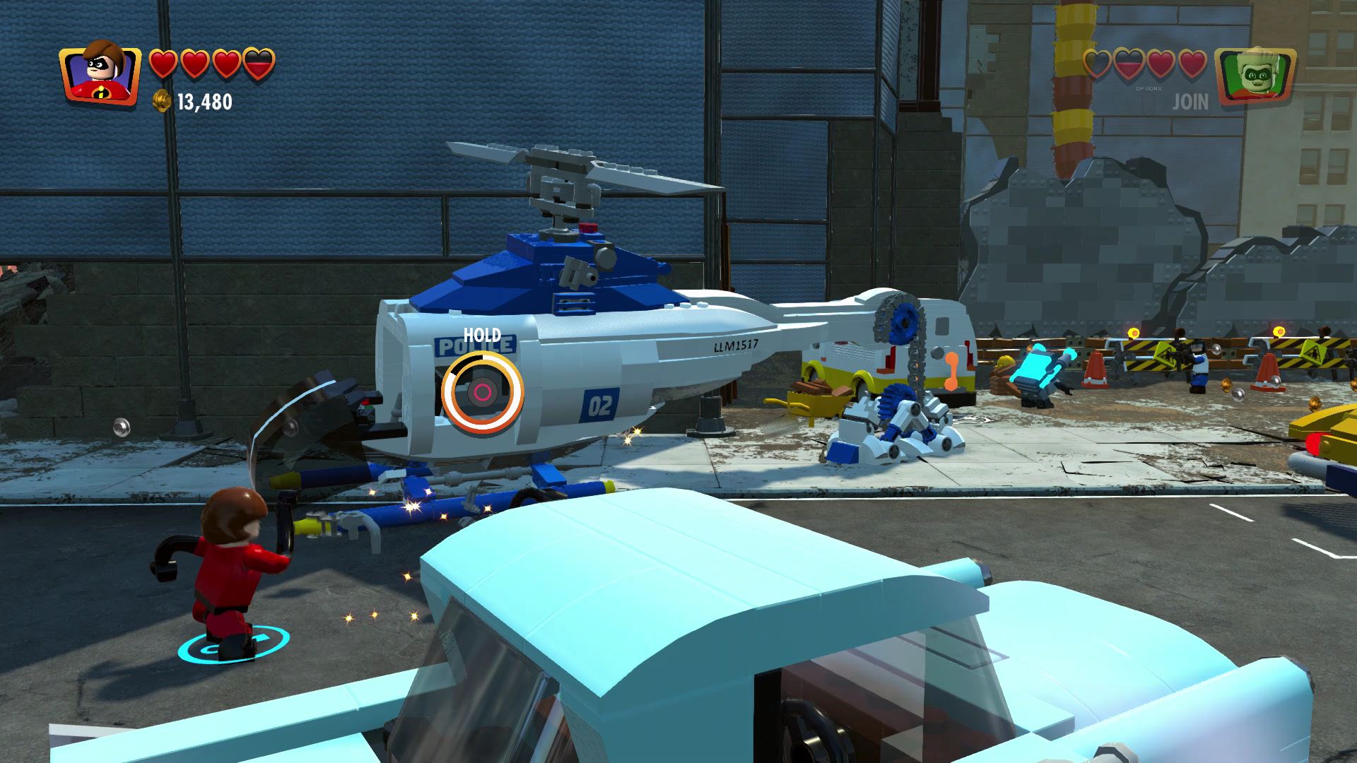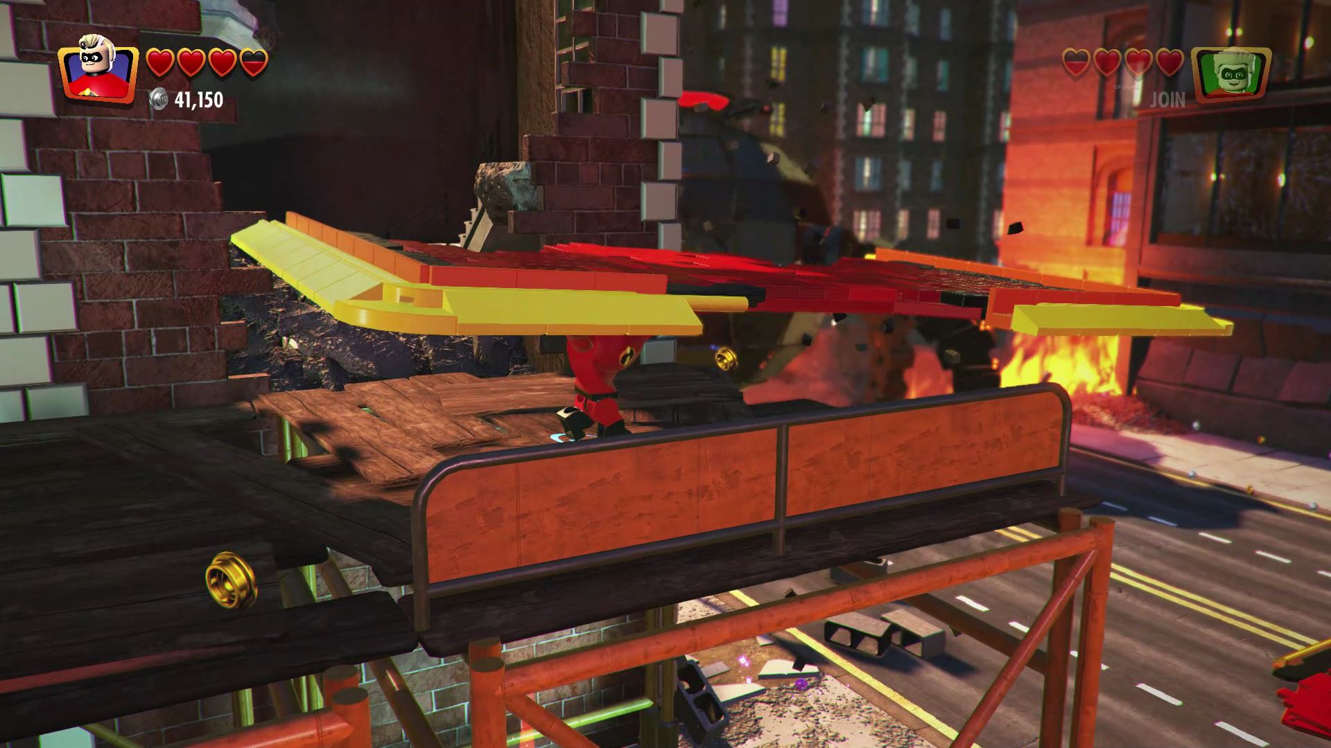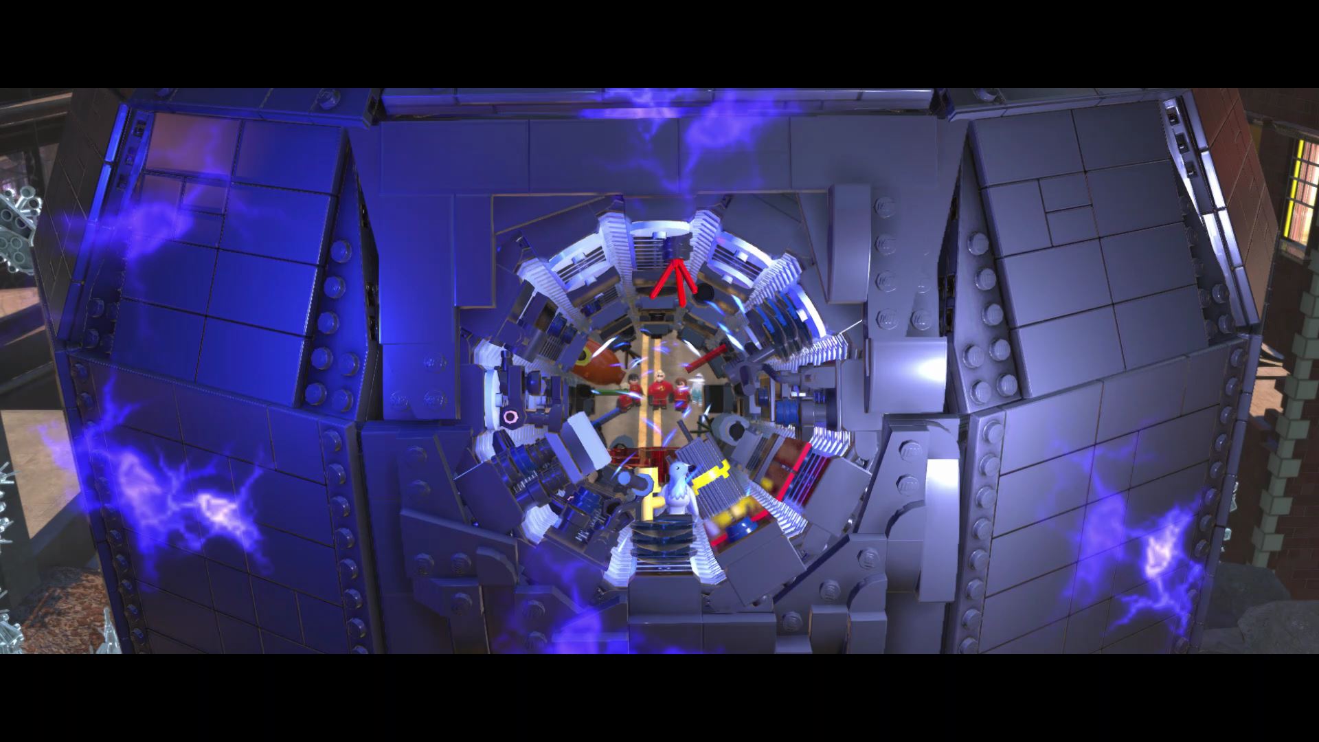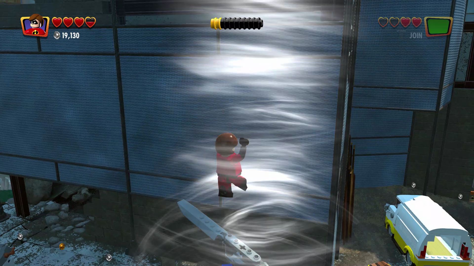 - Minikit #4: Once you reach the construction site, ride up using the helicopter blades and you’ll find a Warp Wall. Teleport through the warp wall with Jack-Jack to reach the kit.