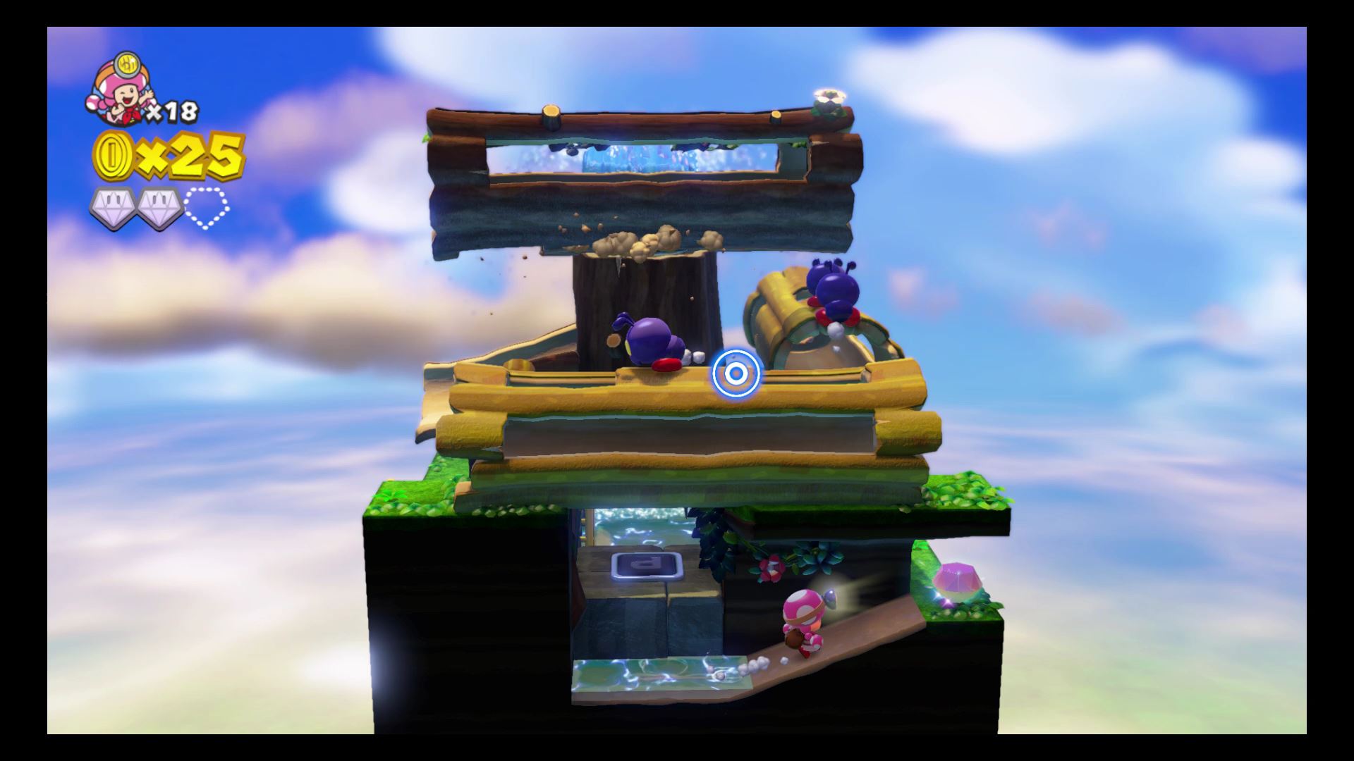- Super Gem #3: Reach the final solid island with three Toadettes to activate the “3” platform.