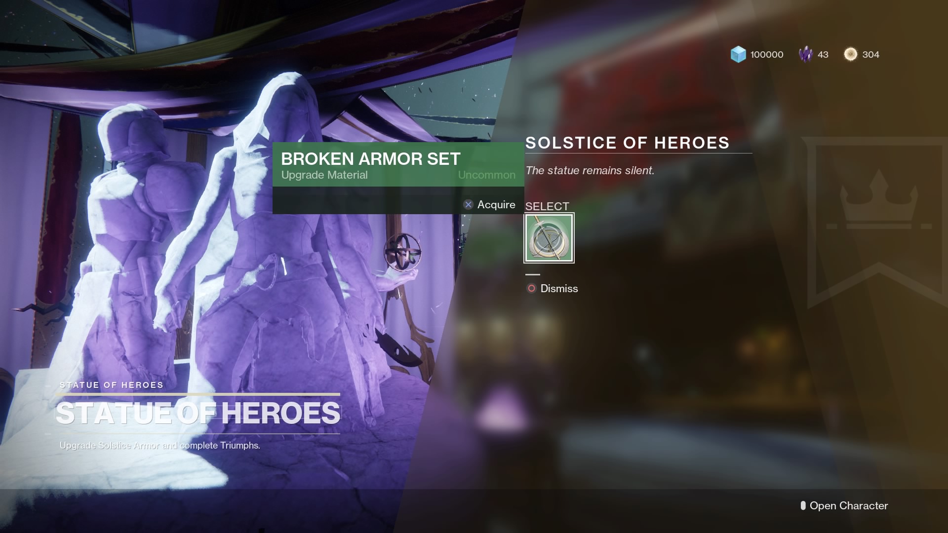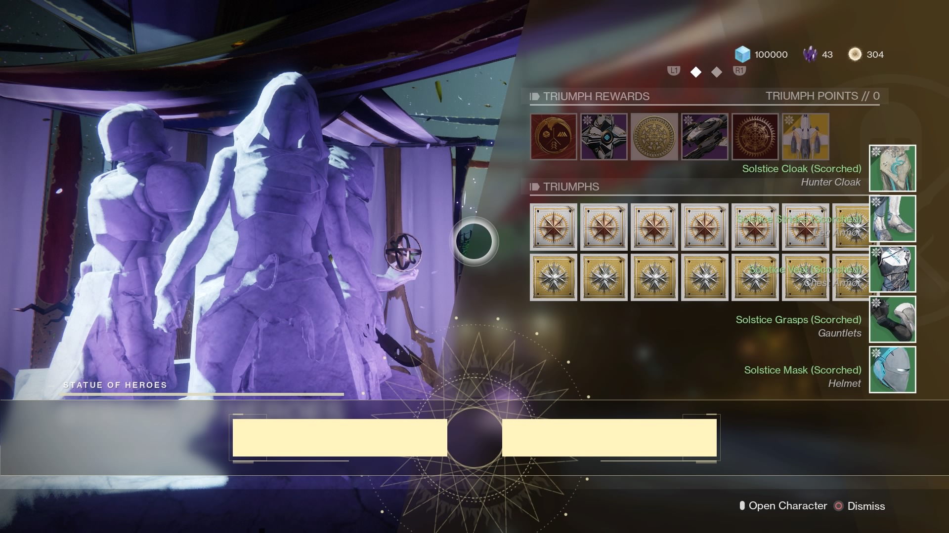 After completing the mission, claim your reward from the Solstice of Heroes statue. You’ll get five parts — and each one has unique missions you need to complete to upgrade. Here’s a quick example rundown.