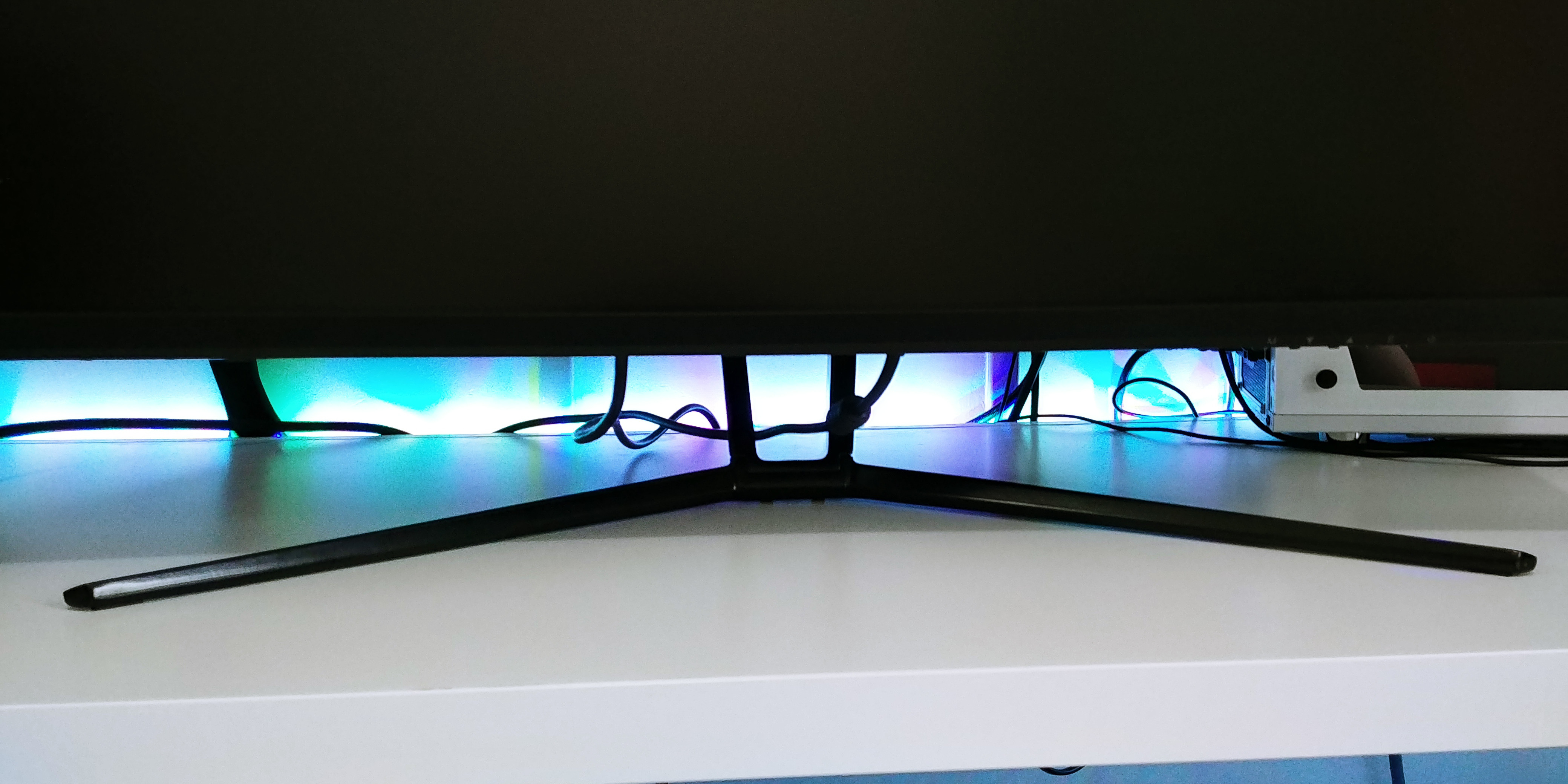 There’s not much to the unboxing process where Pixio had packed everything rather snugged. Opening up the box and you’ll come across the PXC32 display, VESA mount brackets, a standard stand, power cable and a DP cable. I actually really appreciate the minimalistic look of the stand. It contains the standard V-shaped legs but overall, the stand is relatively skinny taking up as little room on your desk as possible. There’s even a small arm that can be pulled down to hold a headset if desired.