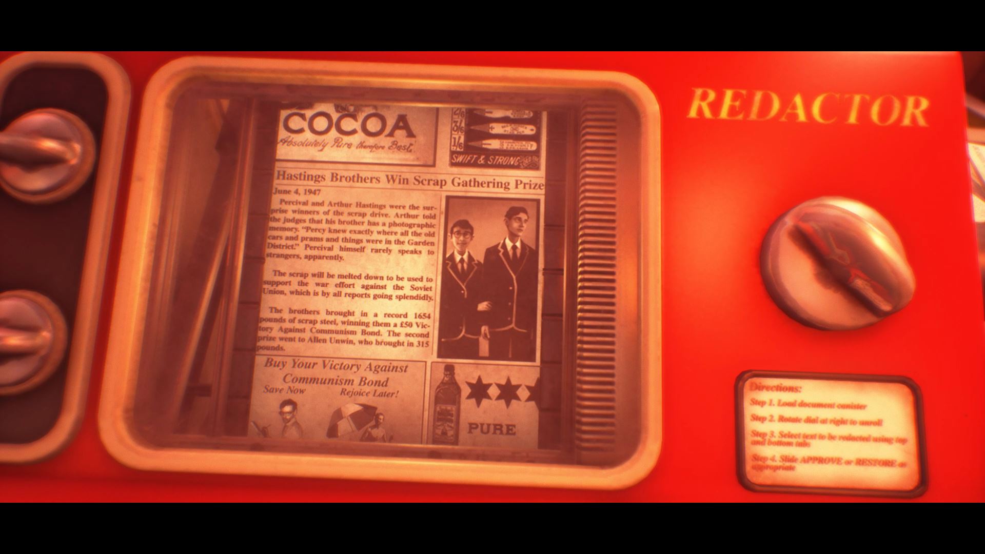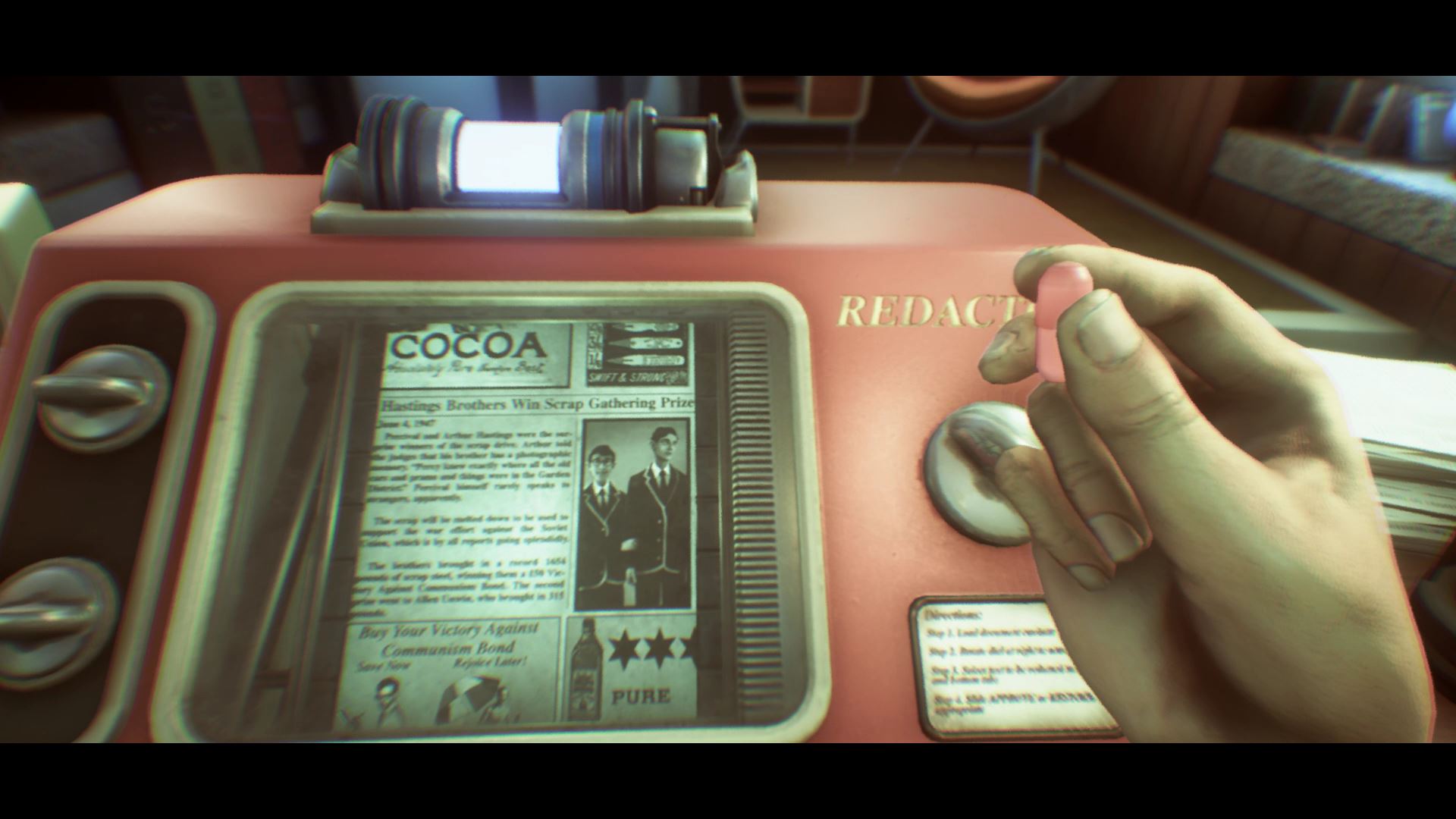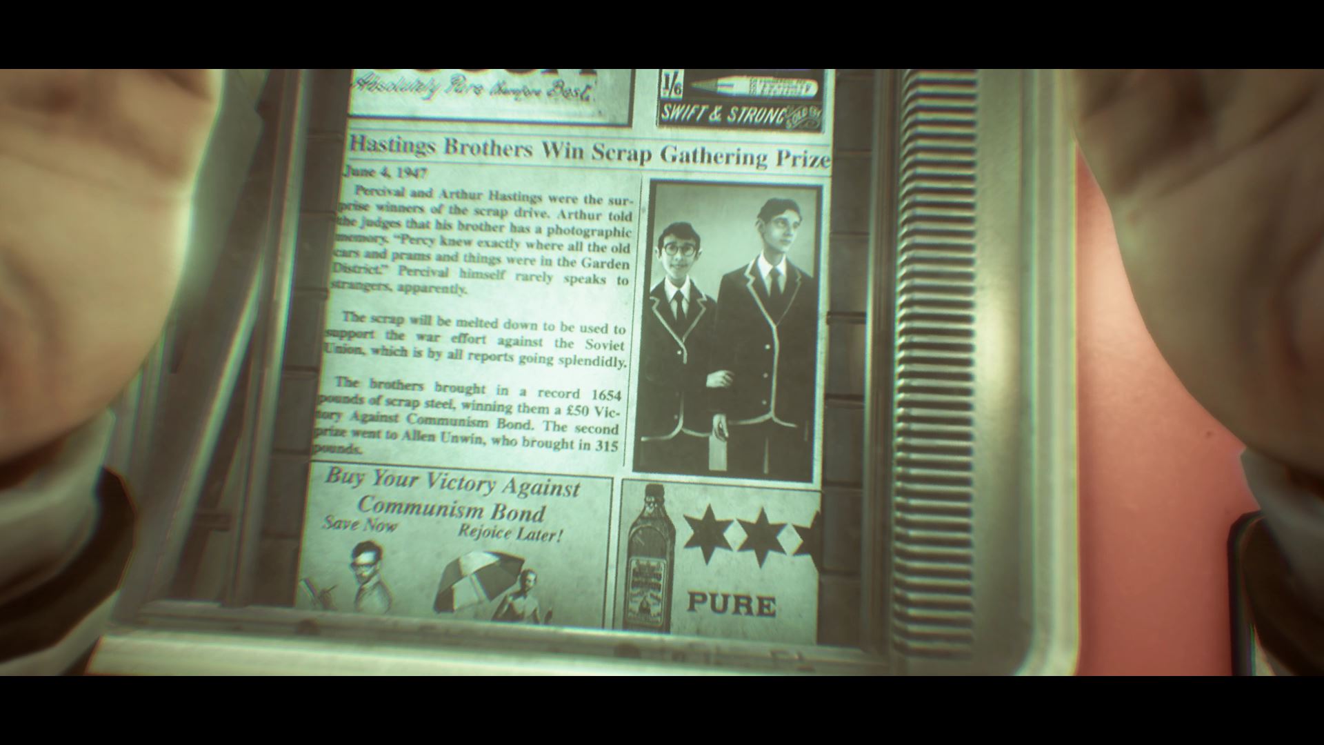Here’s how it all works. You play as Arthur Hastings, a former journalist that now works for City Hall, censoring old newspapers that might make the current residents unhappy. Everywhere you go, you’ll find bronze reliefs with the words “Happy Is The Country With No Past” — and happy are the people with no memories. After discovering a newspaper article that reminds Arthur of his lost brother, he sets out to escape Wellington Wells and rescue his family from an unknown fate he barely remembers after years of drug-induced euphoria. So, how do you get the optional ending?