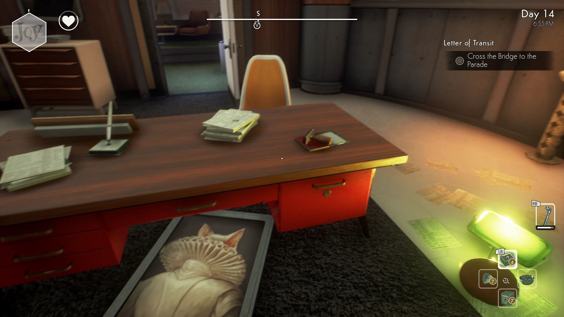 Reach the Editor-in-Chief’s office on the second floor, behind the conference room. The office has been ransacked, but there’s a mysterious door you can examine in the back-right corner. It’s a secret door! And if you manipulate the three cat statues correctly, you can unlock the path to a Kickstarter Easter egg, and one of the best weapons in Chapter 1.