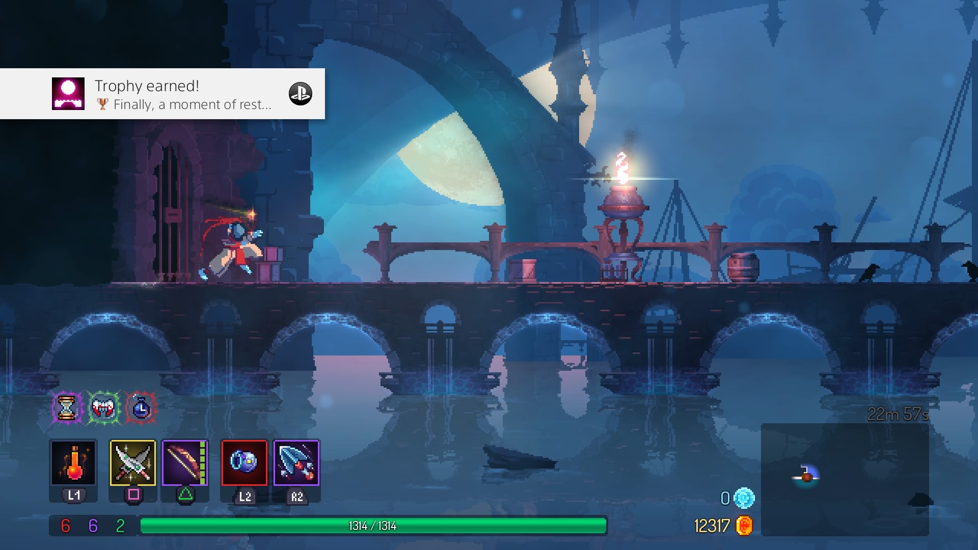 - High Peak Castle: Through a secret wall you can roll through, you’ll find a room that requires three Moonflower Keys. These unique keys are accessed in different areas, in locked room that require Gardener’s Keys. To get the three Gardener’s Keys, check the entry above for “Explosive Crossbow”. To access all three areas, must have completed the game 3 times (3 Boss Cells) and can access the 3 Boss Cell Doors.