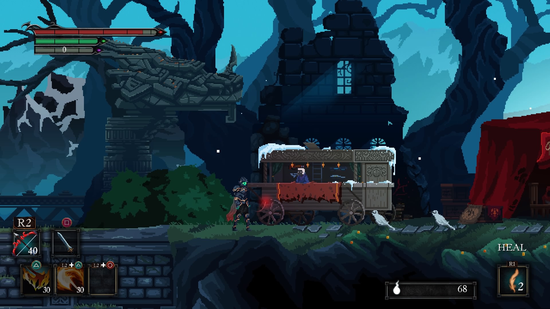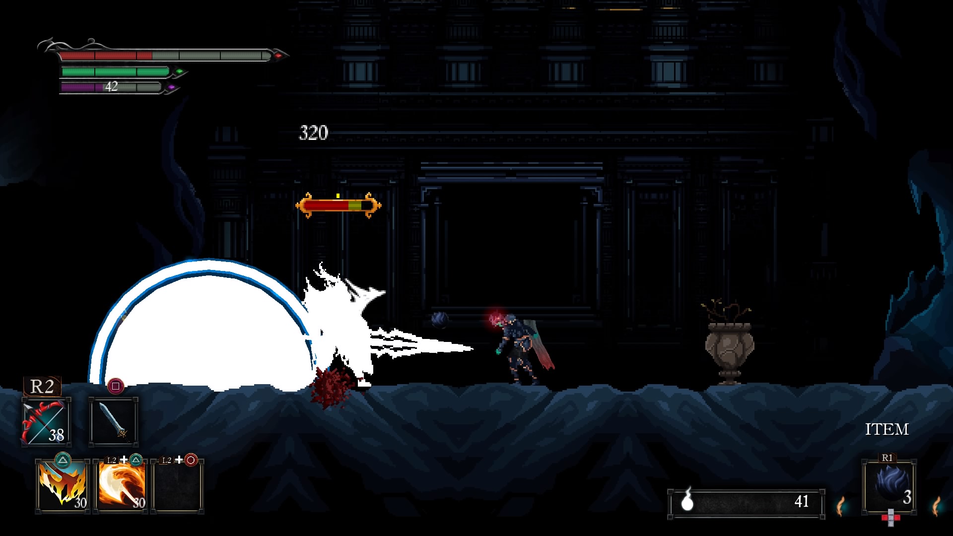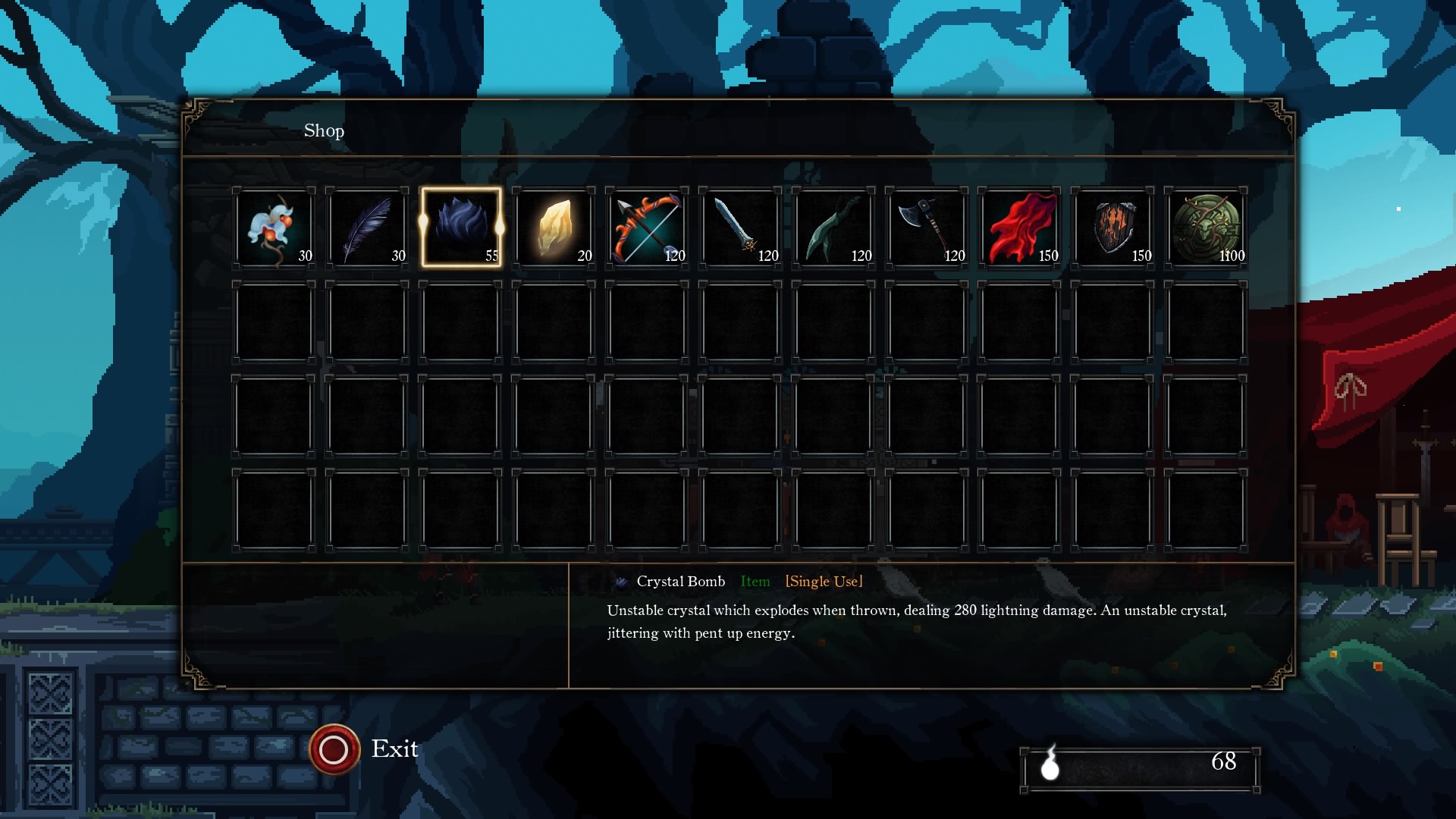 Basically — use Crystal Bombs. Like the Dark Souls series, you can earn resources by defeating enemies. If you don’t want to spend those resources on leveling up, you can use it to purchase items from various stores. Some of those items can be really useful. Bombs in the Souls series could be incredibly useful in the right hands, and that weird little wrinkle seems to stick in Death’s Gambit. The bombs you can purchase are strong enough to bring down one of the toughest reoccurring enemies easily.