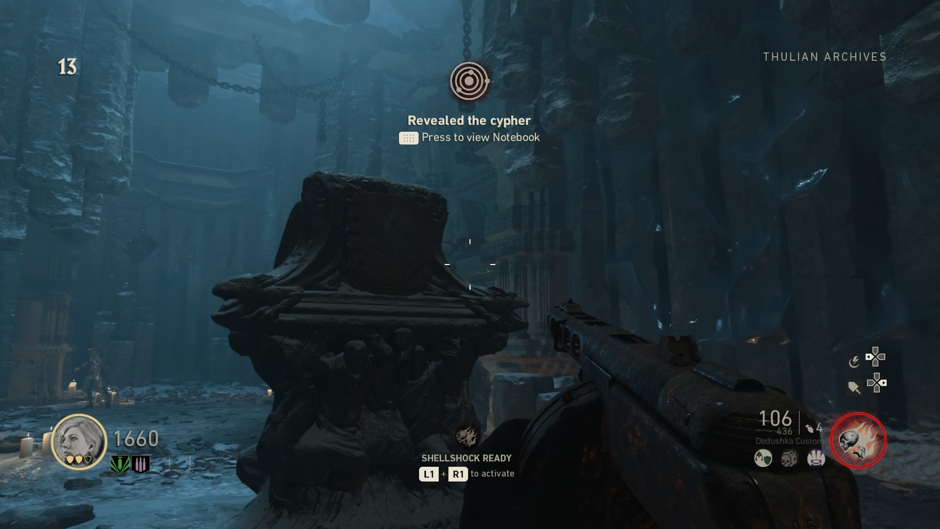 To get the Broken Flail, you’ll first need to collect all the books and gear parts. We’ll start with the books, which are used in the Thulian Archive to unlock the Cypher room. This is required for another step, but we’ll get to that.