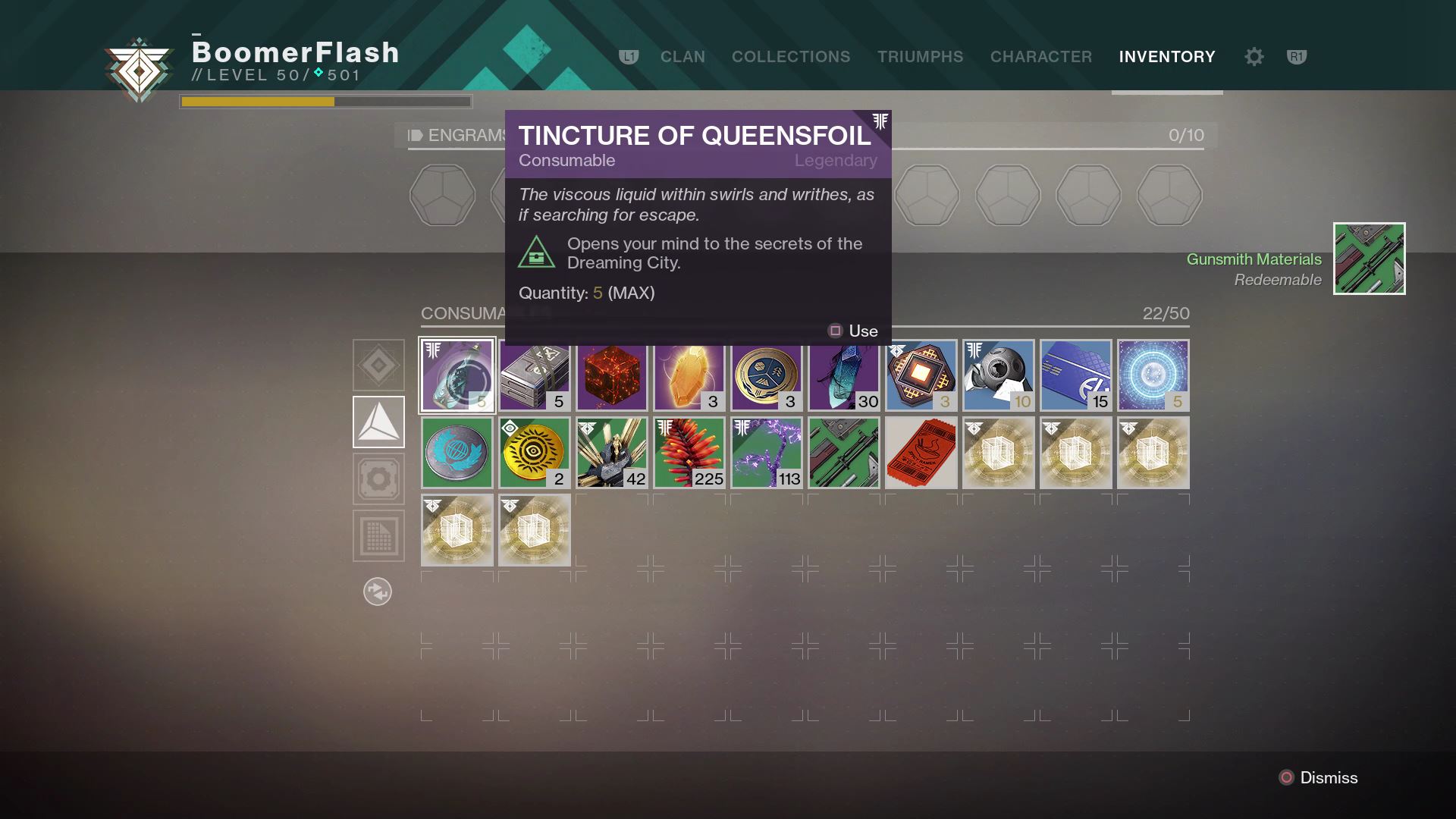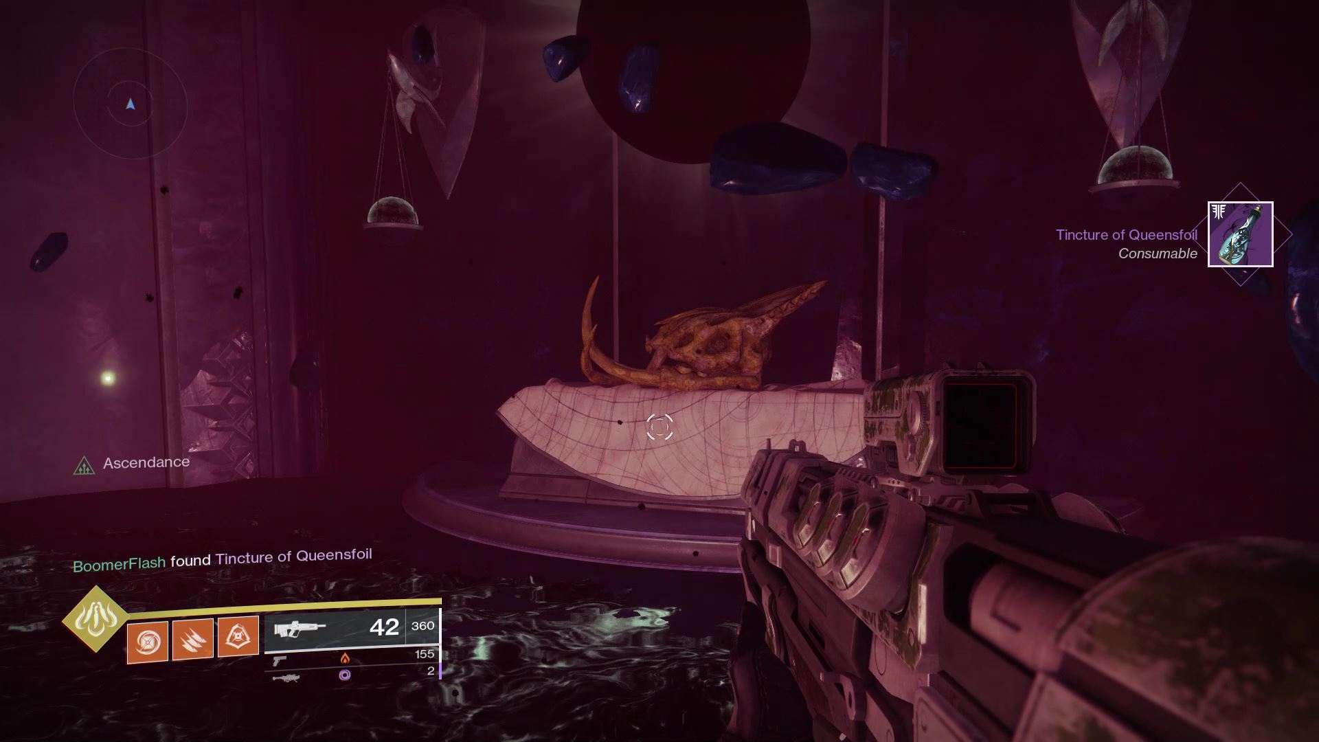 The ‘Tincture of Queensfoil’ is a unique item that only appears in the Dreaming City. Using it gives you the ‘Ascendance’ buff, which doesn’t appear to do anything at all. The Tincture of Queensfoil is actually an important item, and if you want to solve some of the strangest puzzles in The Dreaming City, you’ll need to keep a good stock of the stuff.