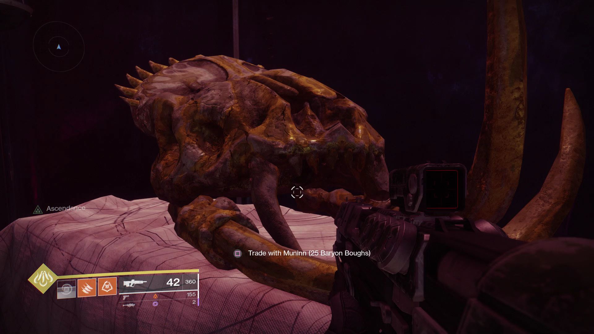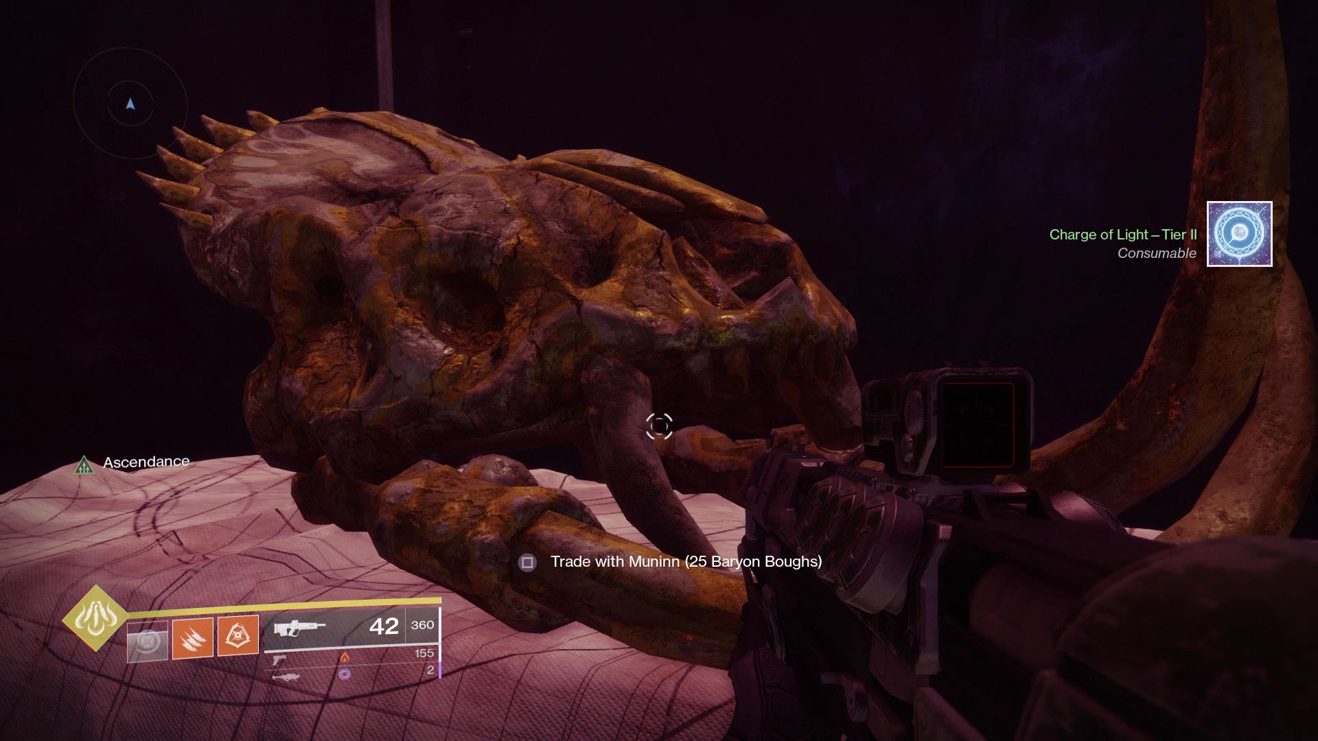 - Trade 25 Baryon Boughs to Muninn to receive a Charge of Light – Tier 2.