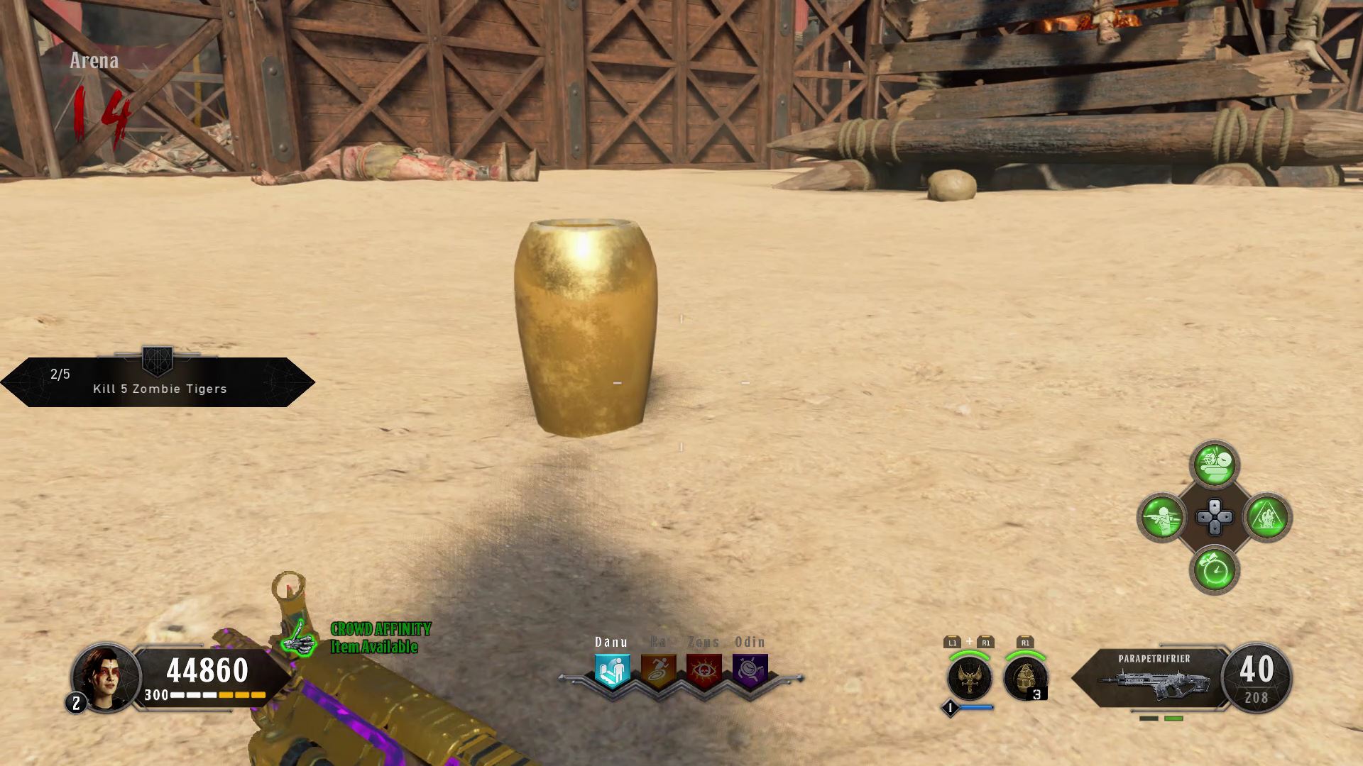 When you hear the special message, look around the ground in the spawn arena to collect the gold vase. Now we’re ready to get the Death of Orion.