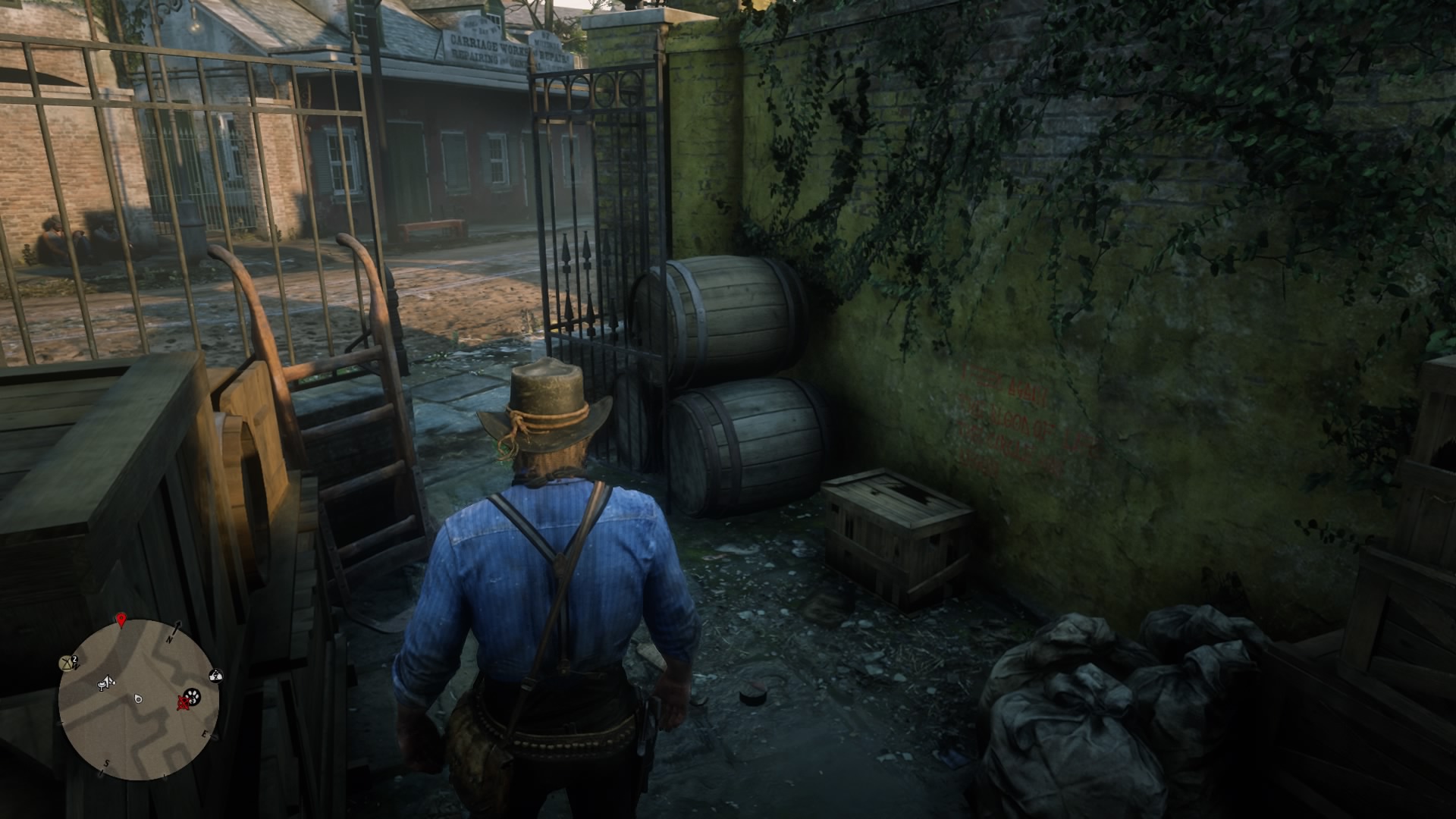 - Scrawling #4: In a small courtyard behind a gate near the trapper’s location.