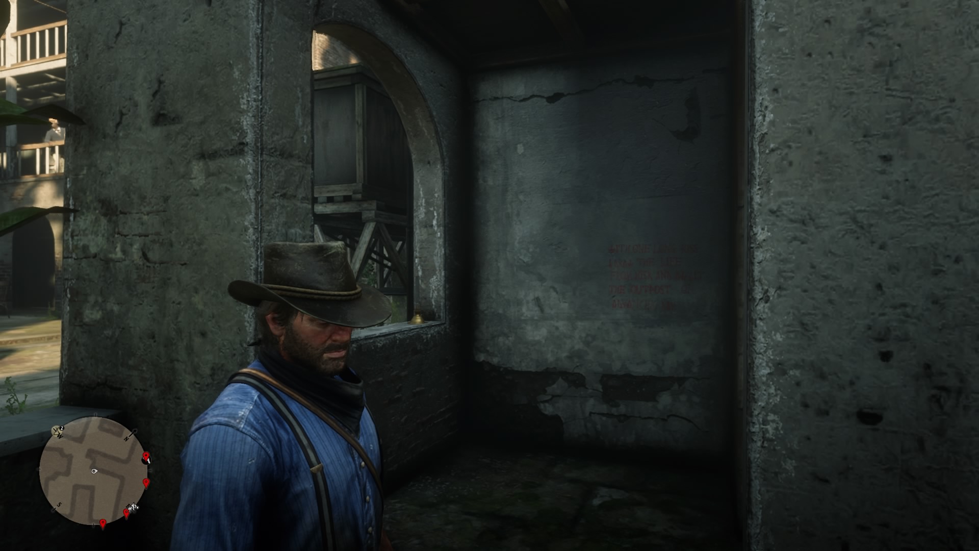 - Scrawling #2: Further north, in the arched hallway dead end.