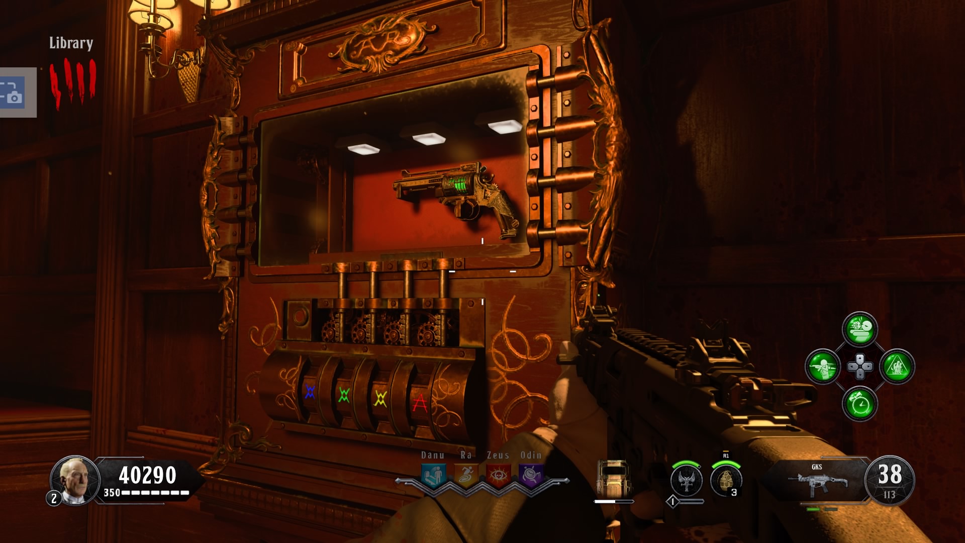 - Library: Left of the Wonder Weapon case, near the broken shelf.