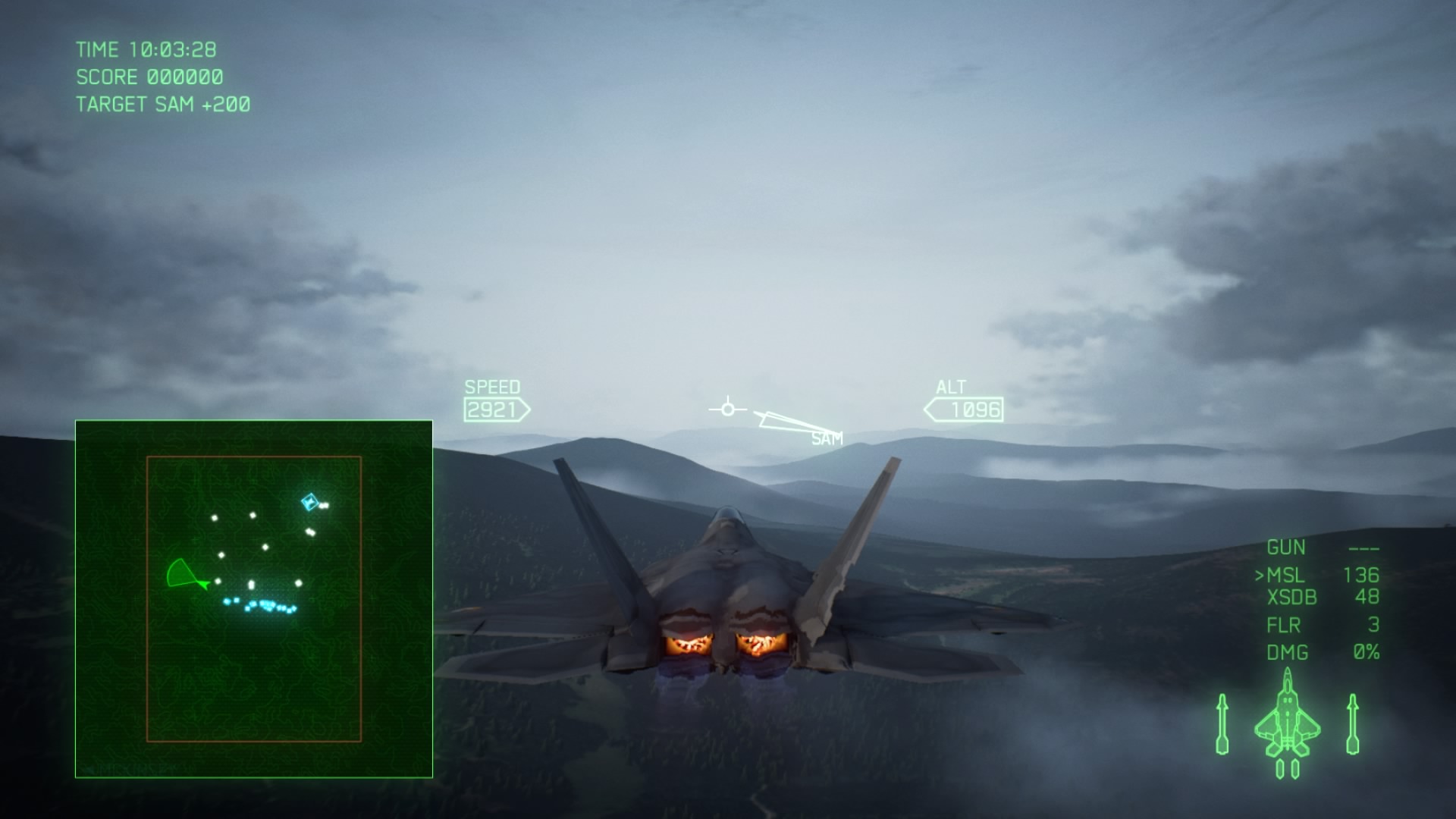 - Start by flying straight ahead and destroying the easternmost SAM sites, swiveling around and clearing the west SAMs in preparation for a wing of bandits to appear in the west. Regular missiles are enough to easily clear the SAMs. If there are AA Guns and SAMs, only destroy the SAMs. The AA Guns are harmless.