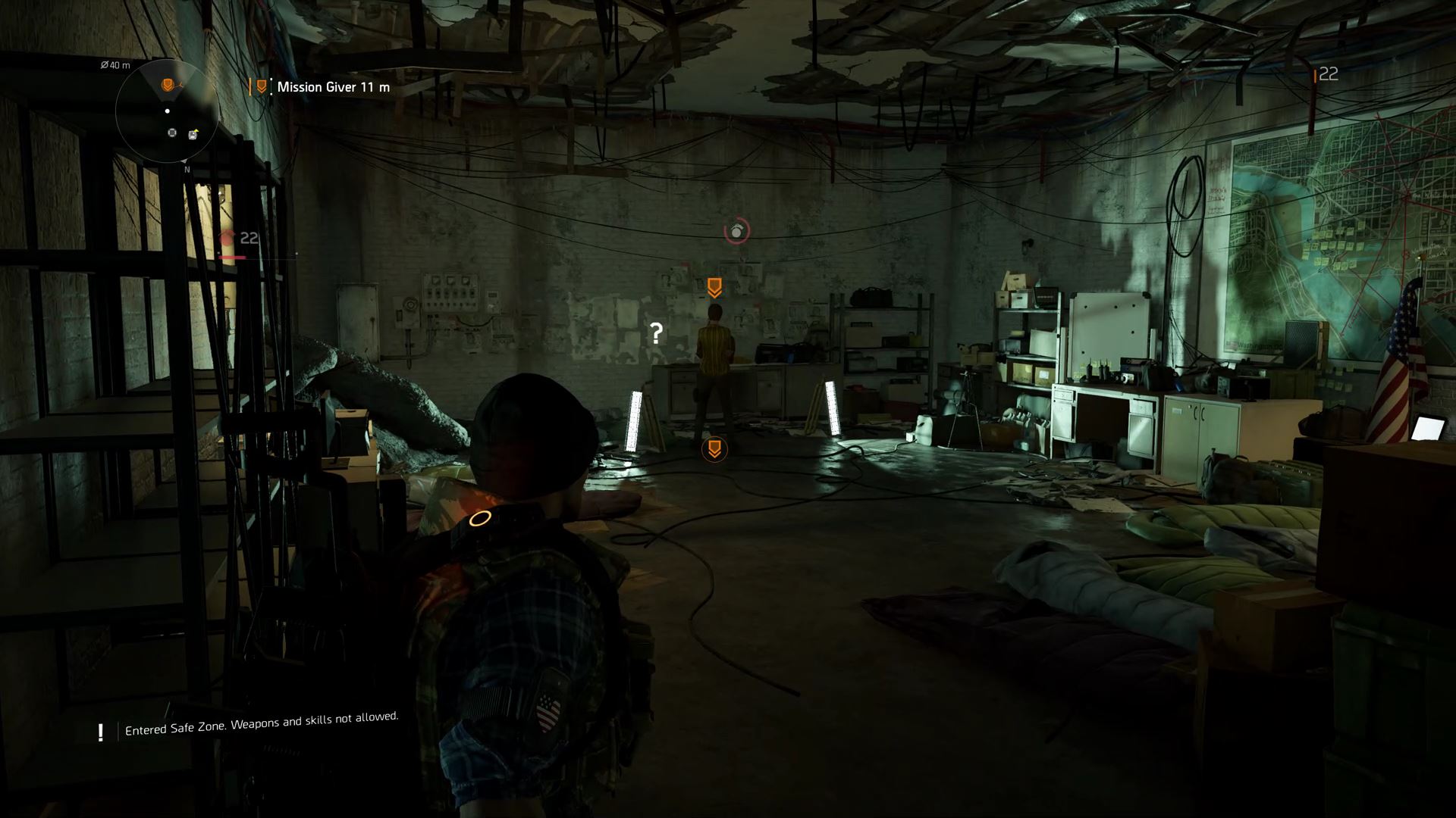 Travelling to a specific underground chamber in Washington D.C. leads you to a woman. She’s a quest-giver in the environment, which I should make clear, I’ve never seen in 20+ hours of playing the game. Quest-givers so far have only appeared in Settlements. This lady sends you to a nearby observatory at Navy Hill to learn about the strange signal.