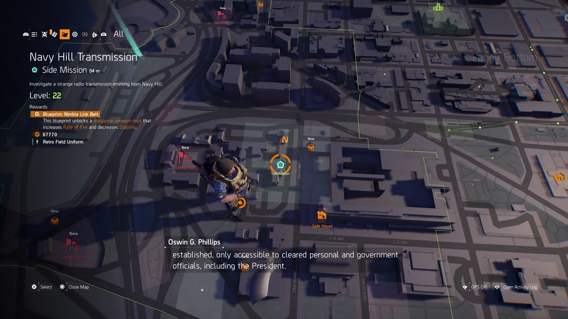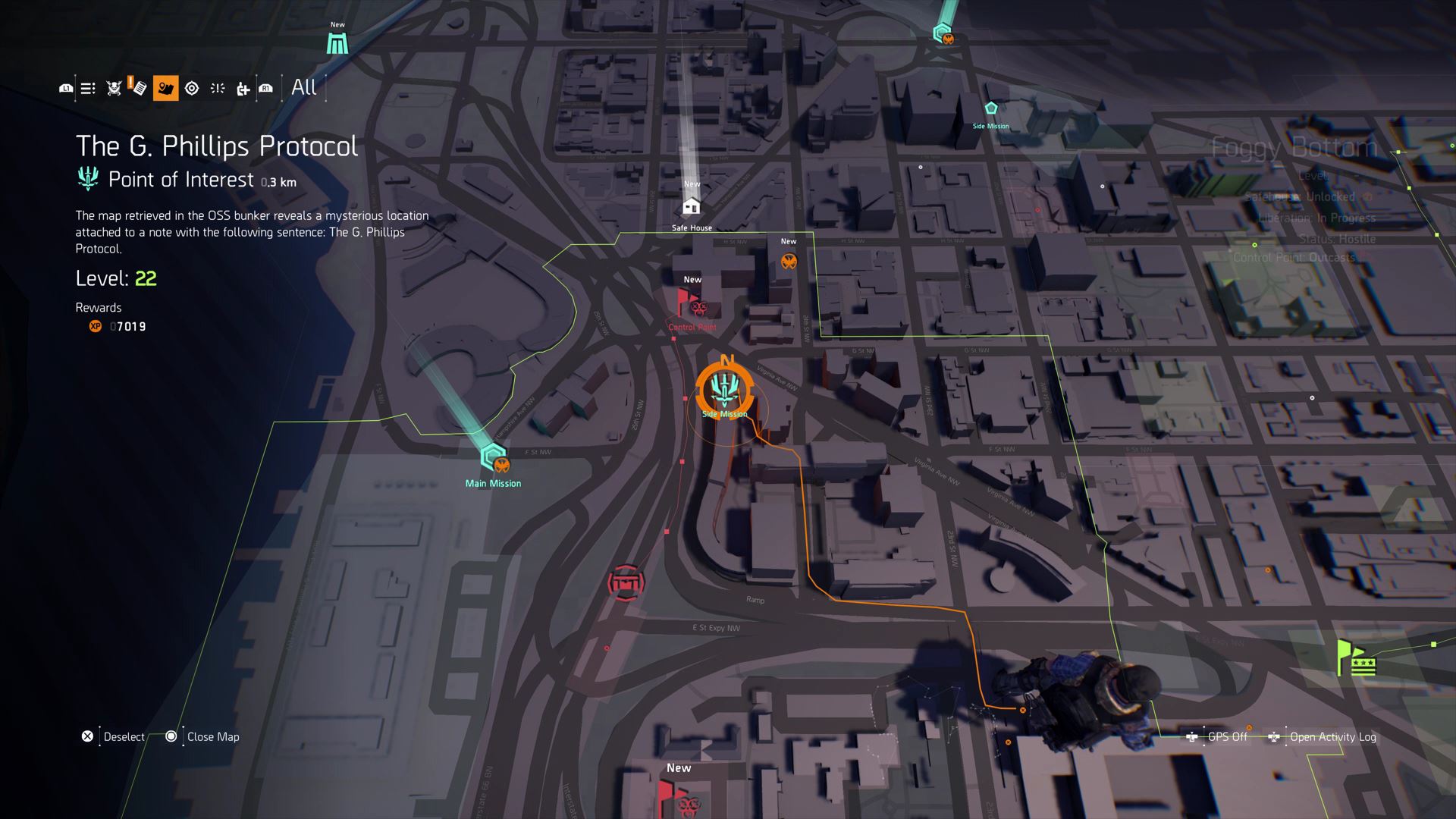 To start the hidden questline, travel to Foggy Bottom — the region on the west coast of DC. Follow the road directly west of the safe house and you’ll discover a point-of-interest. Travel up the road and enter the open doorway to find a ladder leading to the sewers underground.