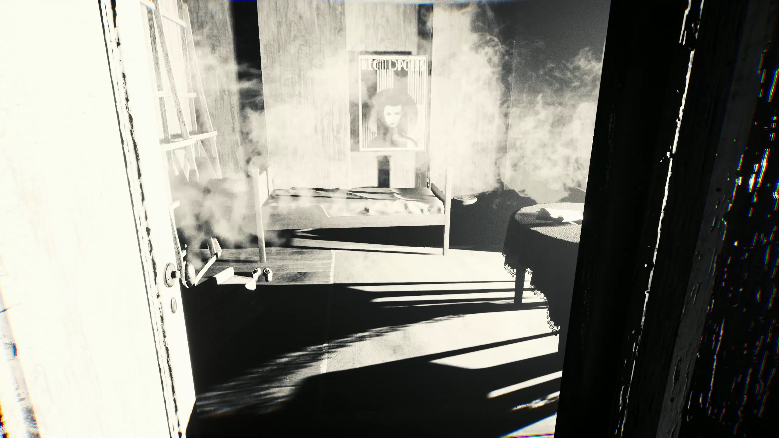 Poster #4: Past the door puzzle with the projector, you’ll reach a hallway with an optional lock. You’ll know you’re in the right place if there’s a kid sitting on a dresser in the room ahead. Find the room with the mannequin on the bed and turn the chalkboard to get the key code. The poster is located behind the locked door.