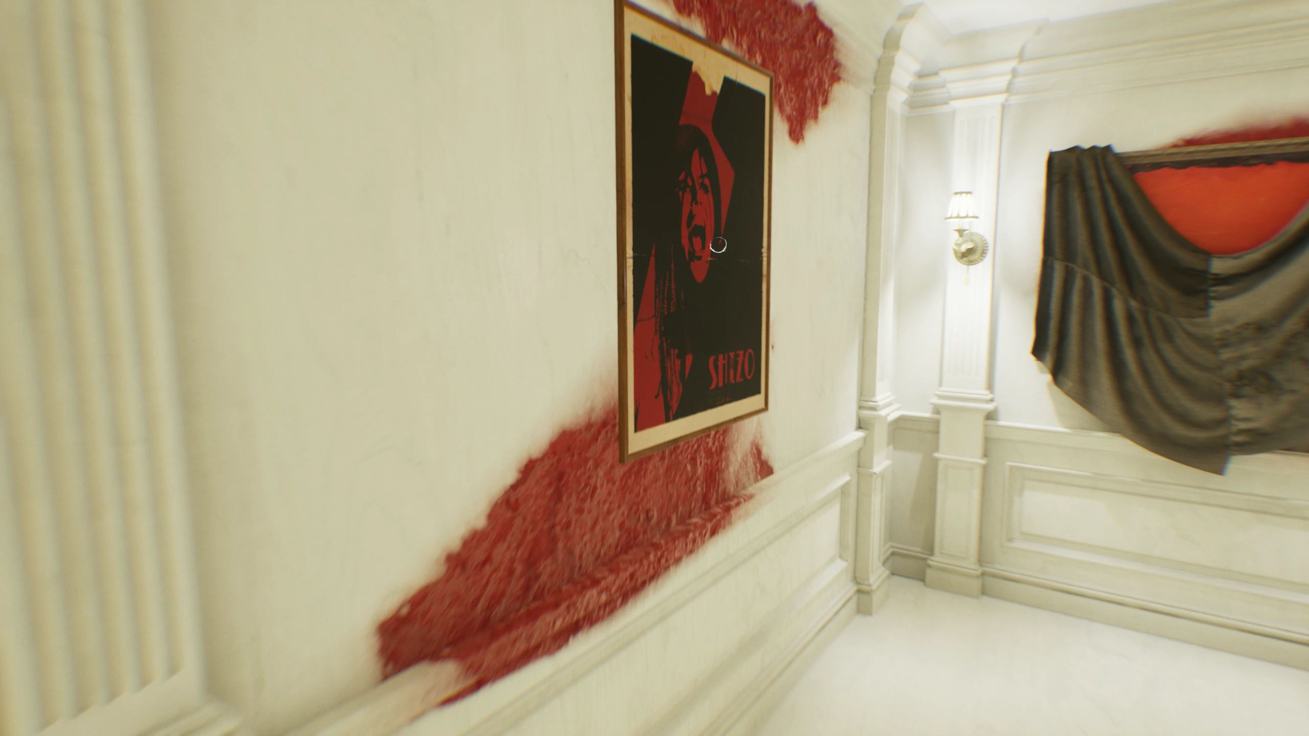 Poster #6: While dodging the bright, blinding bursts of light, you’ll reach an outdoor area. Past the courtyard, you’ll enter the apartment building on the other side. There’s a door to the right that leads to an optional room with this poster.