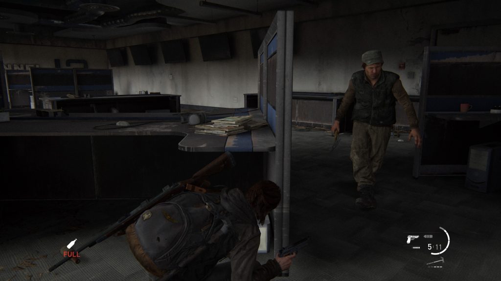 There are two types of infected you’ll deal with through most of the game. These poor souls have unique attributes that TLOU2 doesn’t really explain if you’re a new player — runners can see, and you can fight them like any other enemy. Clickers are blind, and they’ll kill you instantly if they get in melee range. Basically, clickers are high priority!