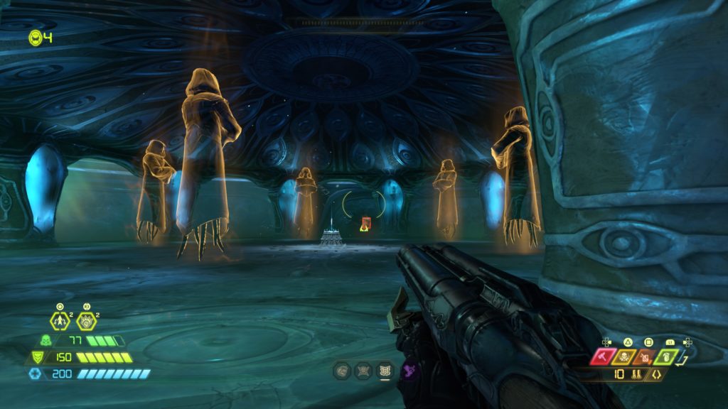 As always, there are collectibles to grab, so we’re going through each level to explain where to get them all. In addition to the Codex collectibles, there are new Escalation Encounters. These optional arenas unlock upgrades for your new Sentinel Hammer, which replaces the Sword and is a whole lot more useful. The Sentinel Hammer stuns enemies in its blast radius, generates ammo, and is restored by performing Glory Kills or destroying weak points.