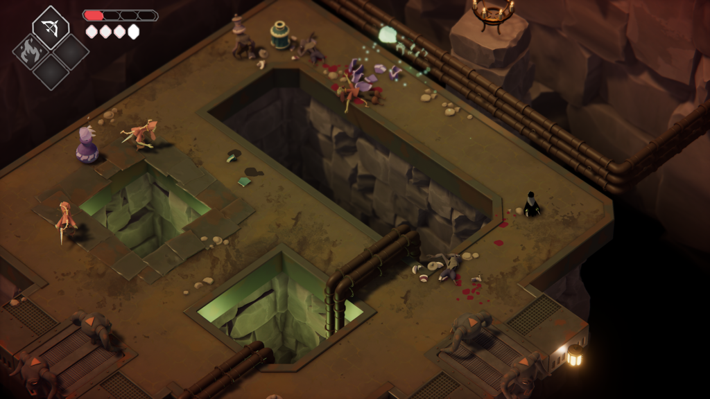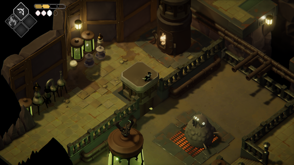 Watch out — when the Plague Doctor is defeated, it drops its poison tank on the ground. It explodes after a moment. Continue into the next room to activate the furnace and create a new shortcut.