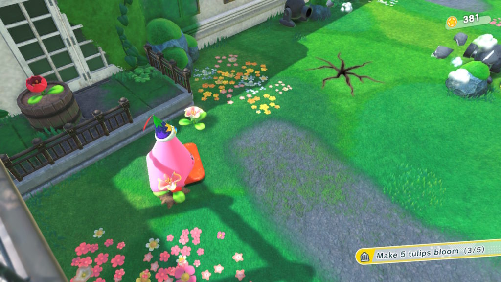 - Tulip #3: After getting the Traffic Cone Mouthful Mode, continue through the grasslands until you reach two cannons and a cracked ground. In the corner there’s a porch with a tulip on a round barrel.