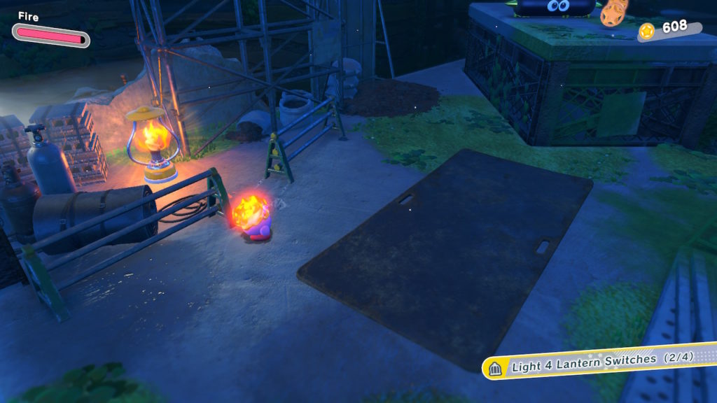 - Lantern Switch #1: The first lantern is in the first dark tunnel of the stage. Enter the tunnel and find it on the right side. You’ll need a Fire Copy Ability to light the lanterns.