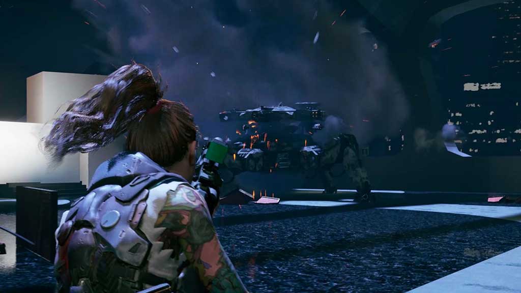 Yes, there is a story within the title, but you’re not playing the game for that. You’re playing it to get a giant robot mech that you can customize and control to your liking and then have at it as you blast through enemy mechs.