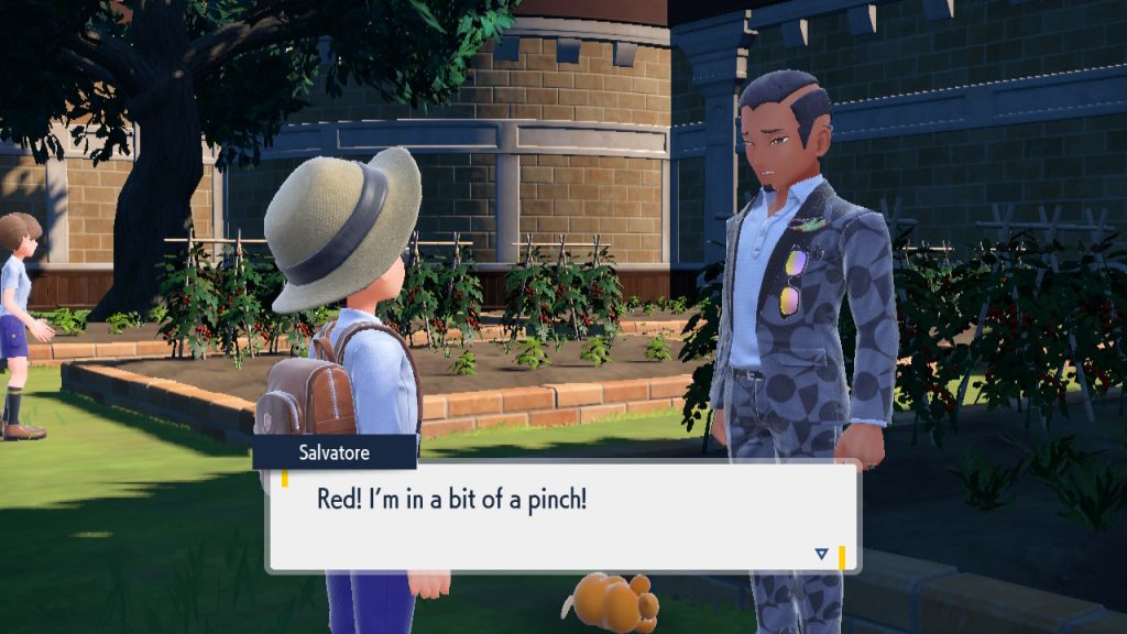 In the Schoolyard, talk to Salvatore near the garden — a defeated Pawmi is on the ground nearby. You’ll need x1 Potion in your inventory. Only a standard Potion will work. If you don’t have a Potion, Salvatore will find one and use it on the Pawmi for you.