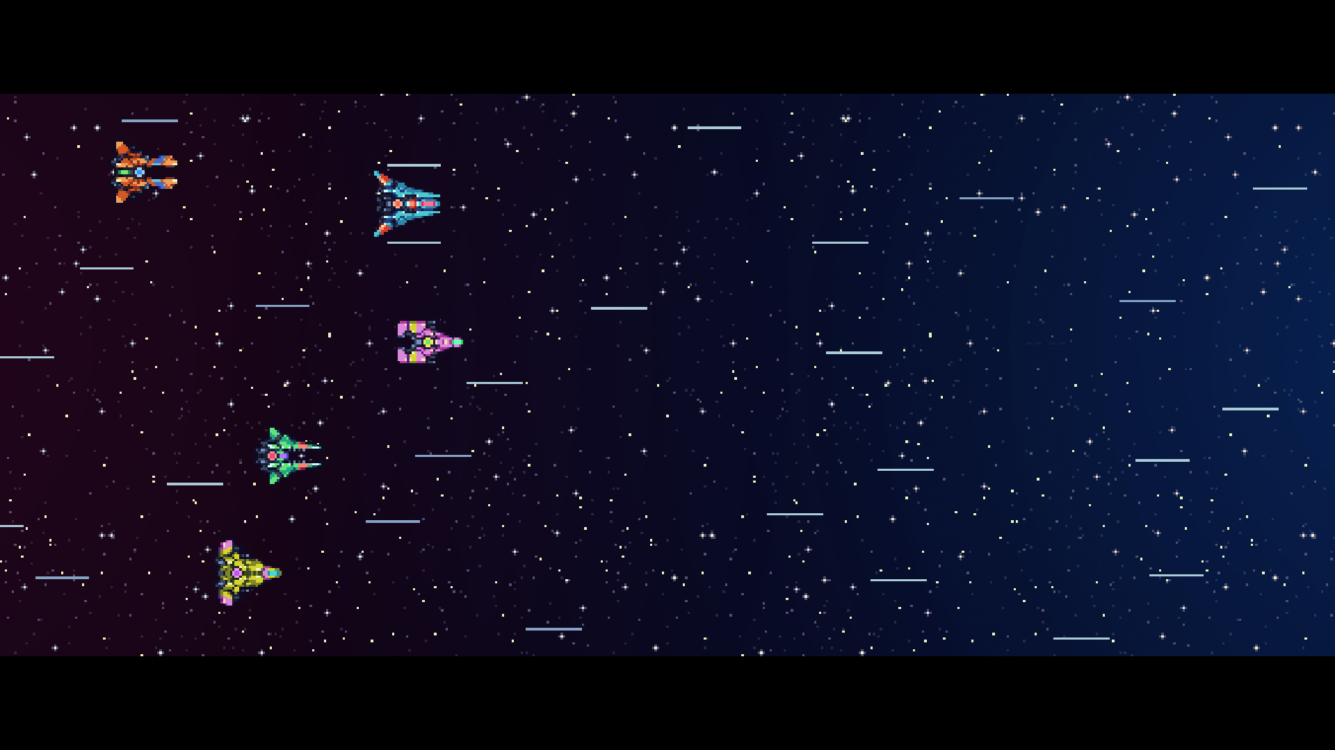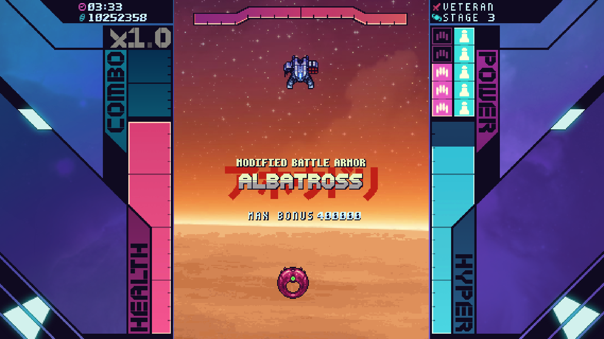Impressive animated story sequences and voice acting present a campy, but rather thin narrative which pieces the entire game together along with a healthy amount of catchy chiptune beats. Humans are at war with aliens from Tau-Ceti, more or less, and it’s up to the 14 members of the Super Galaxy Squad to blow up thousands of them after a fragile peace breaks and another war heats up. While the narrative isn’t so important, this isn’t the kind of game where you want or care for a gripping story anyway. Really, you just want to blow up other ships while not getting blown up yourself. That said, there’s some impressive voice acting that managed to immerse me more than I otherwise would’ve been. I’ve heard much worse from bigger budget titles.