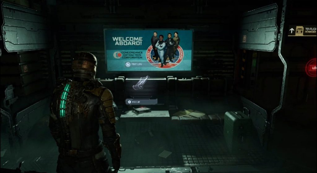 As you make your way into the Ishimura, you will find the next text log on a table inside the Flight Lounge to the left of the room.